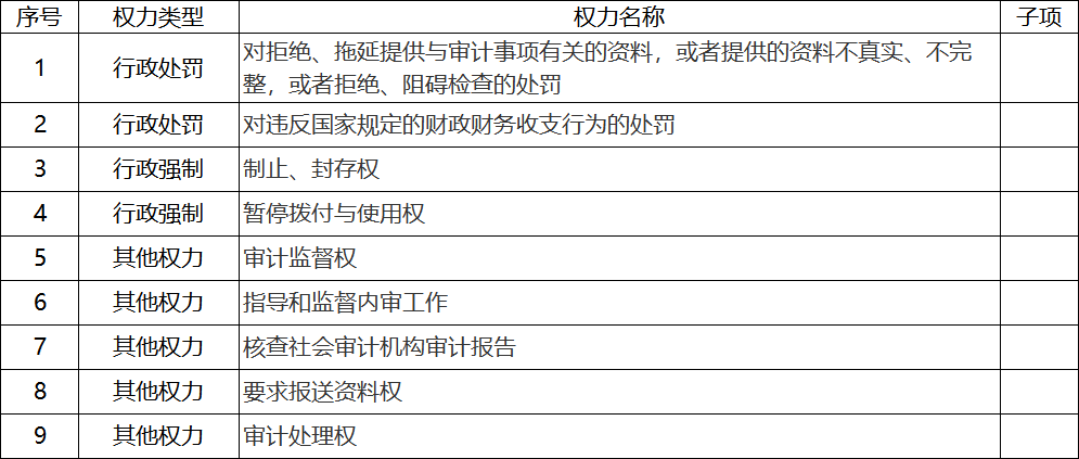 霍邱县审计局权力清单总目录表(2023本)