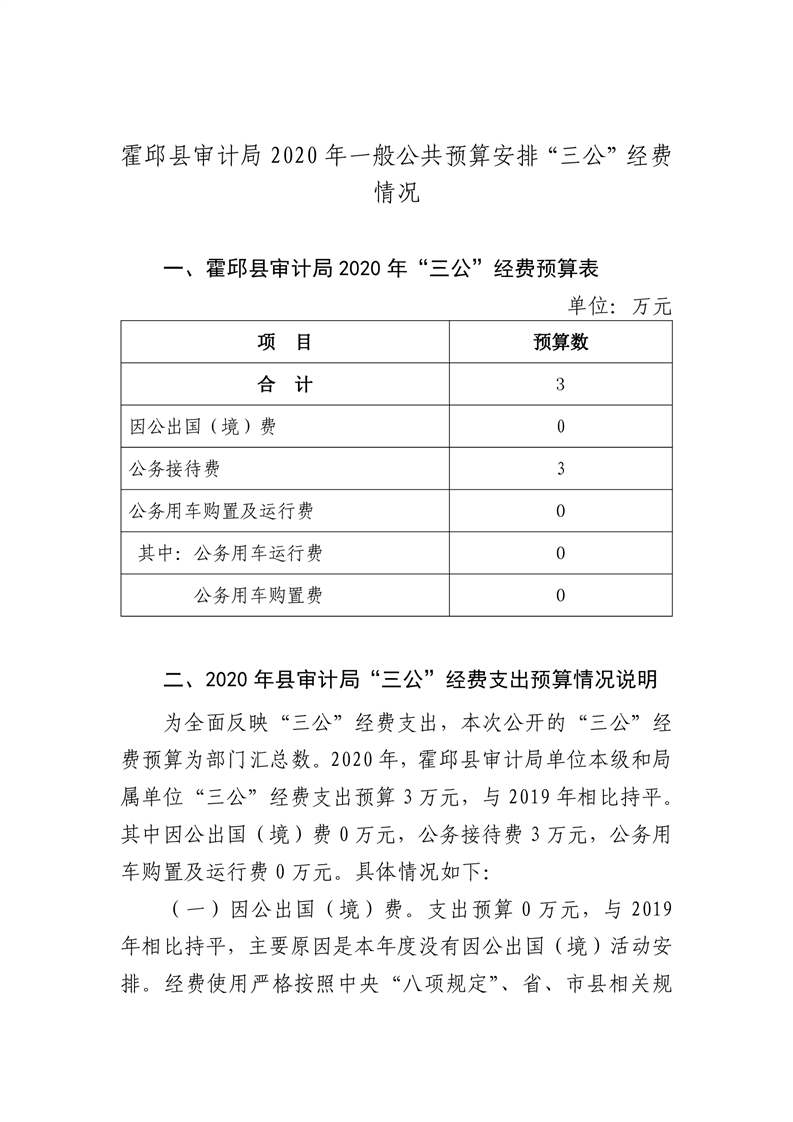 霍邱县审计局2020年一般公共预算安排“三公”经费情况