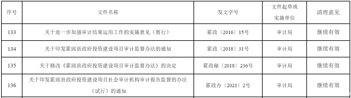 霍邱县审计局规范性文件清理结果(2022年)