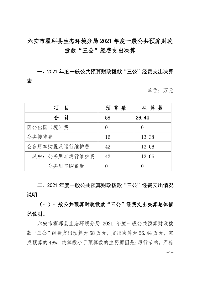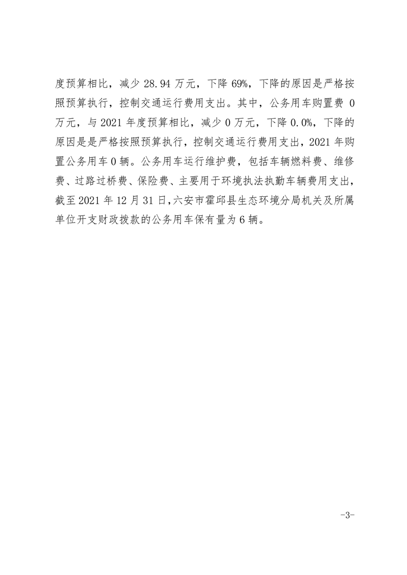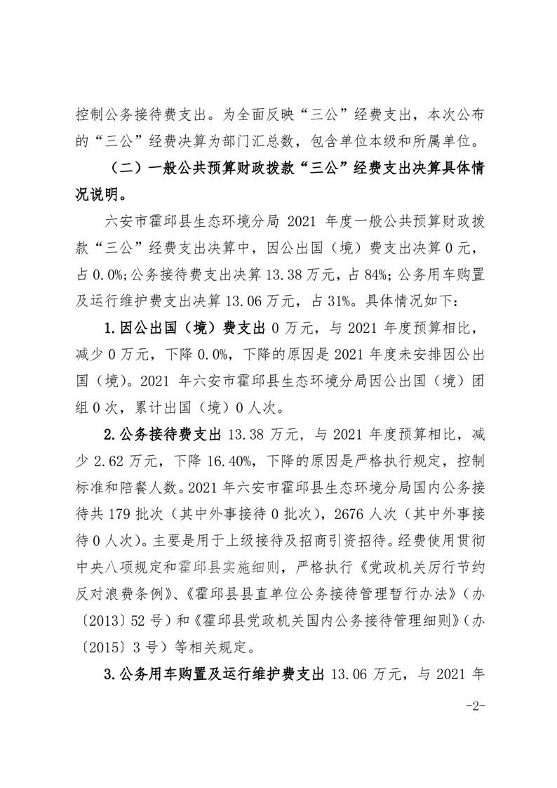 六安市霍邱县生态环境分局 2021 年度“三公”经费决算表及说明