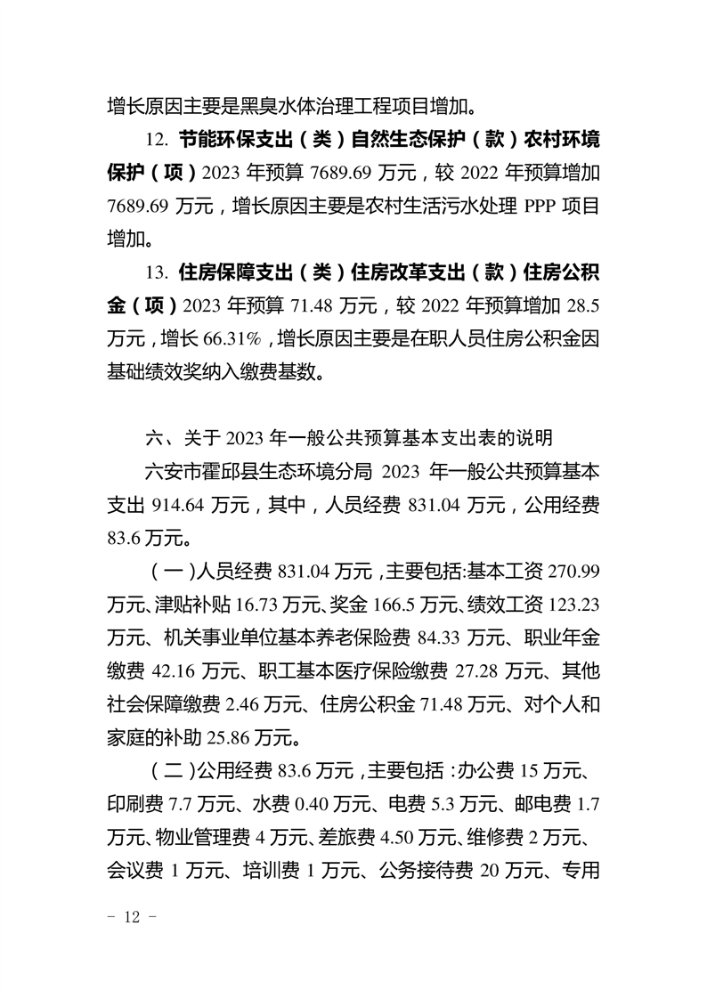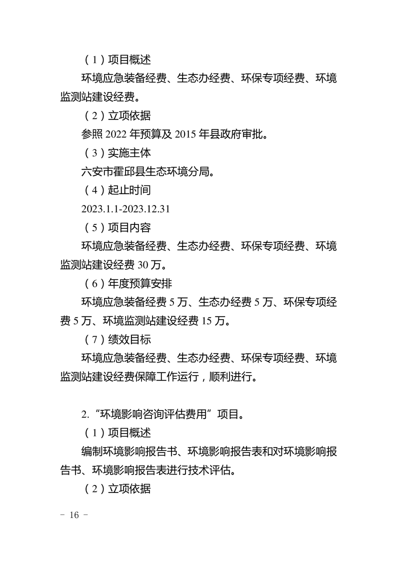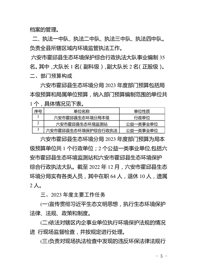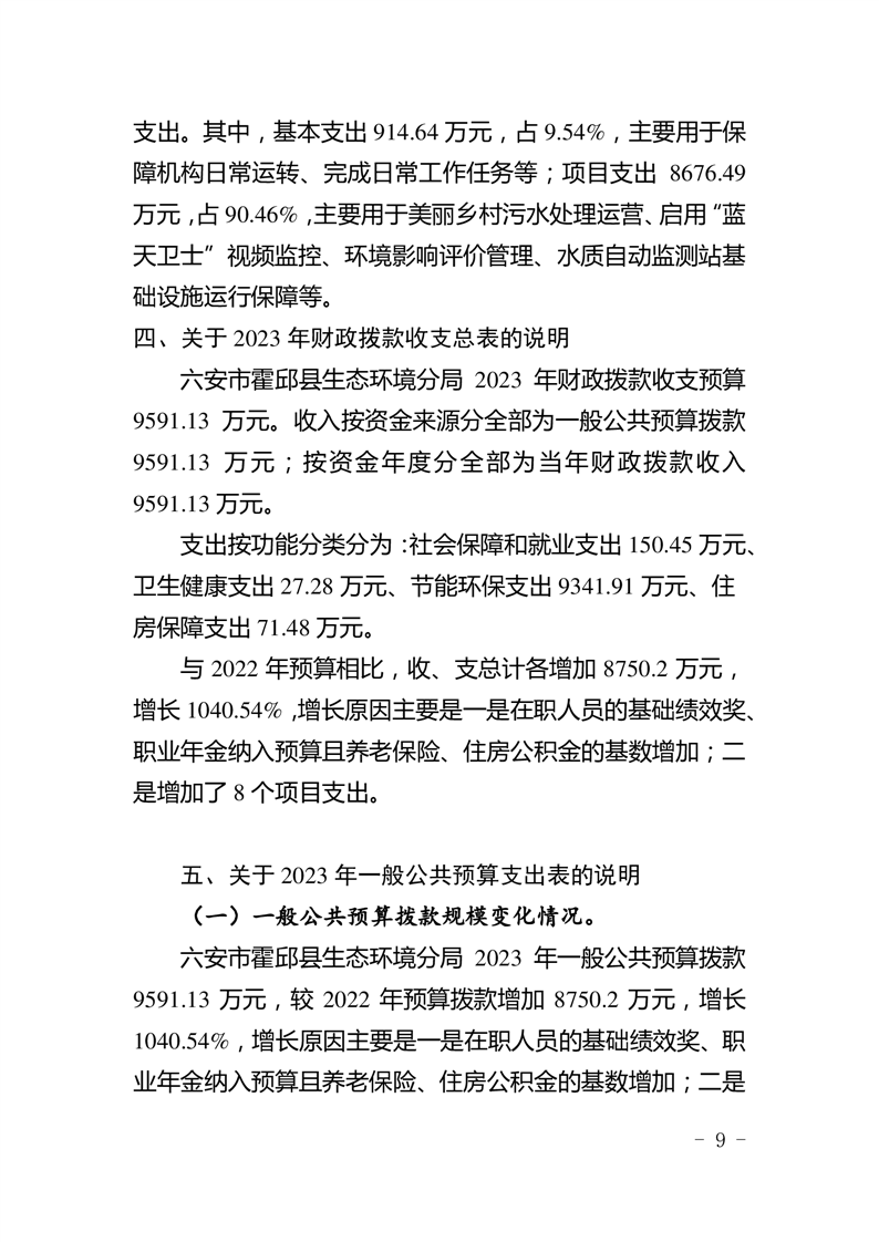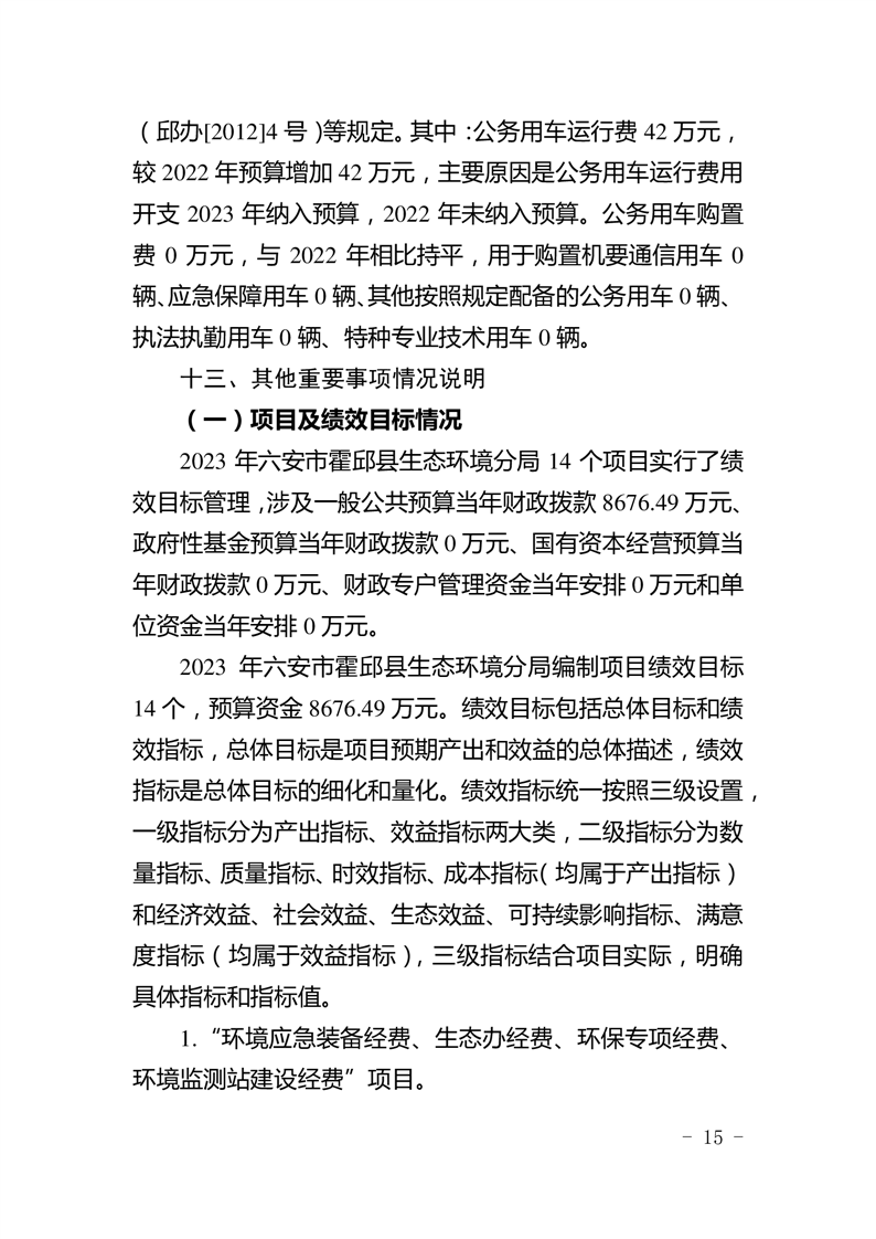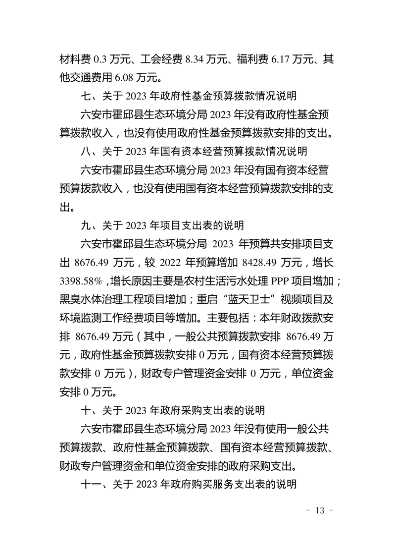 霍邱县生态环境分局2023年部门预算