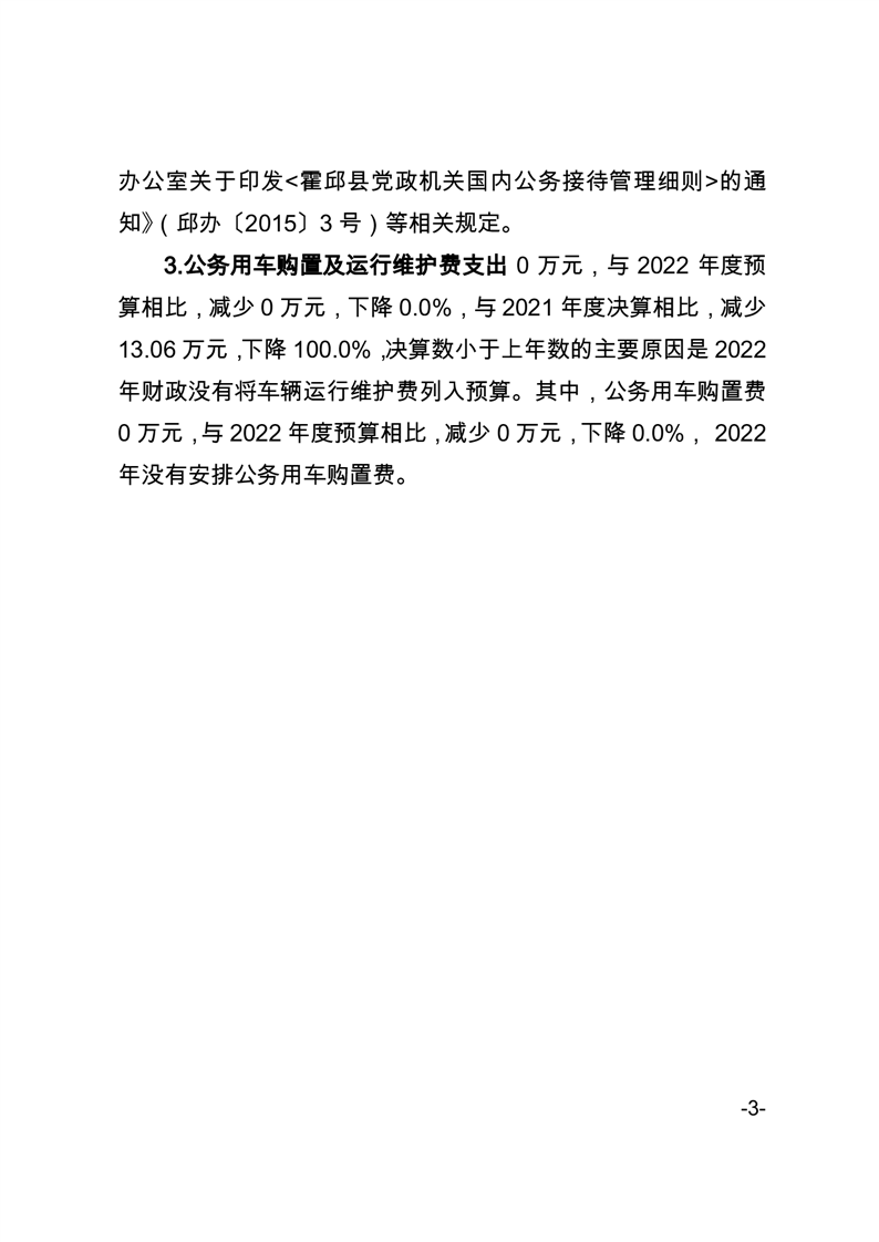 六安市霍邱县生态环境分局 2022 年度“三公”经费决算表及说明