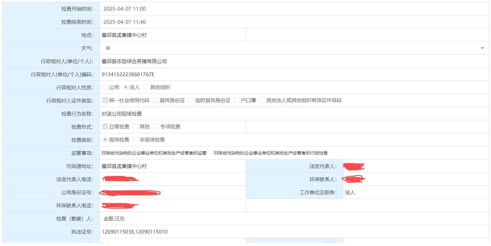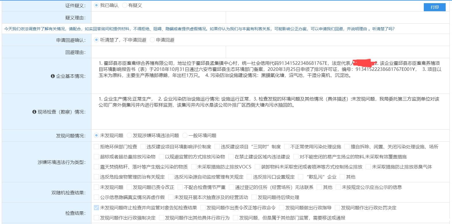 六安市霍邱县生态环境分局大气污染专项检查调查询问笔录