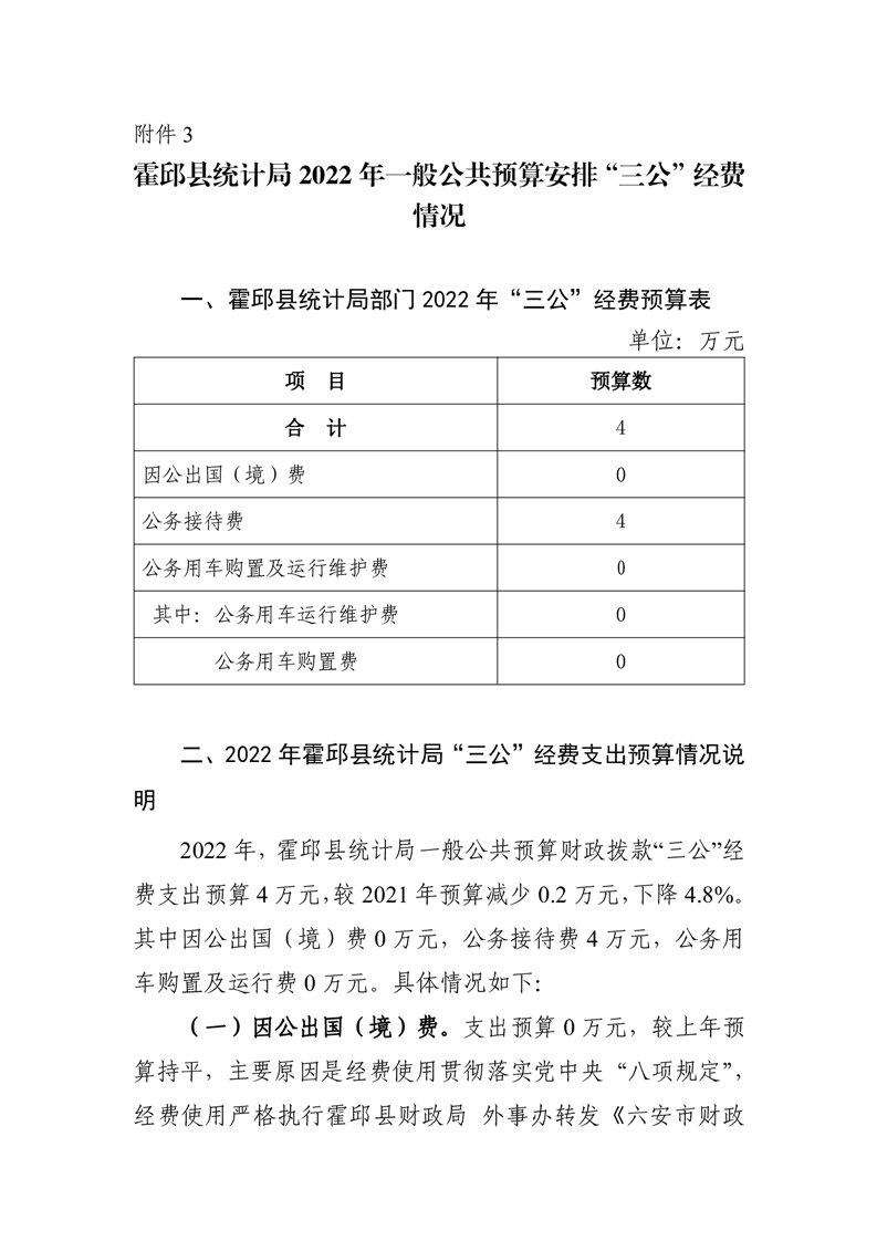 霍邱县统计局2022年度一般公共预算安排“三公”经费情况公开
