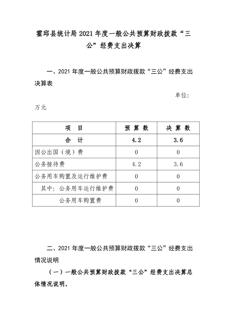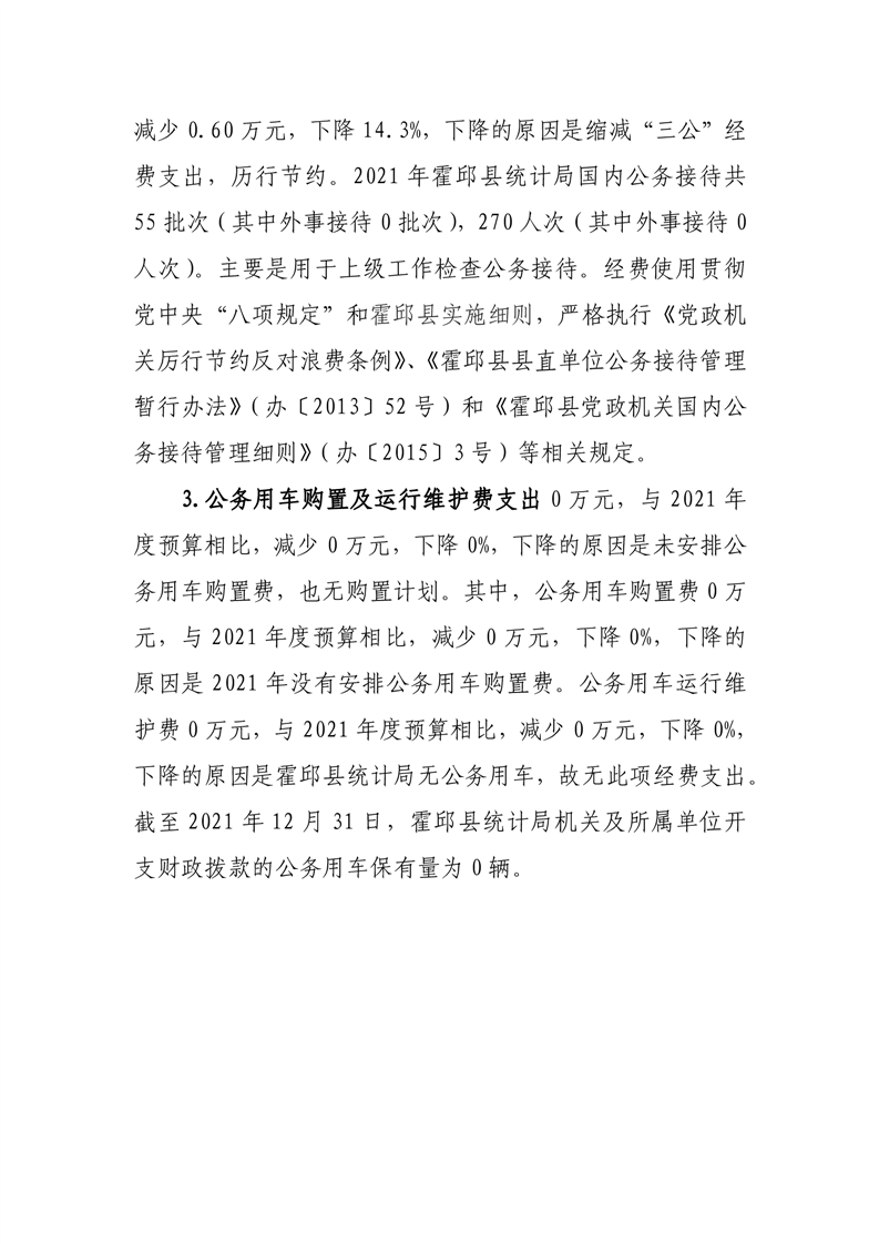 霍邱县统计局2021年度一般公共预算财政拨款“三公”经费支出决算