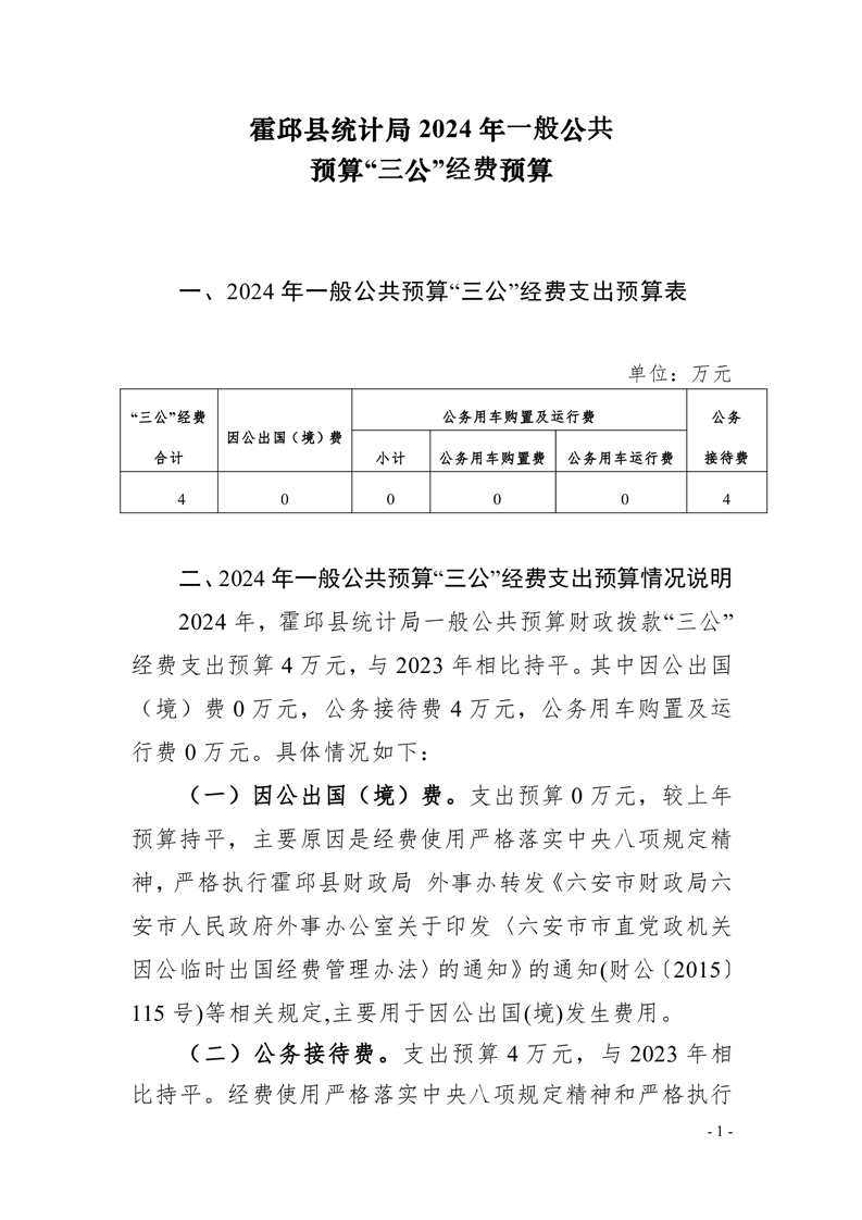 霍邱县统计局2024年一般公共预算安排“三公”经费情况公开