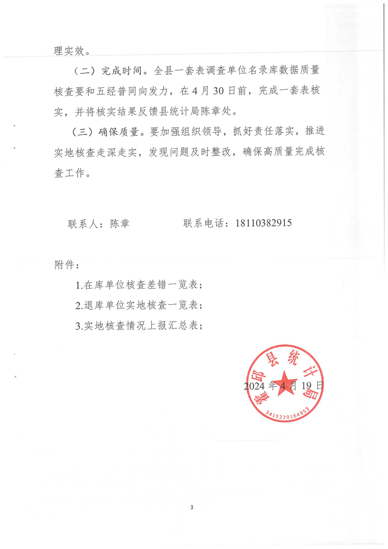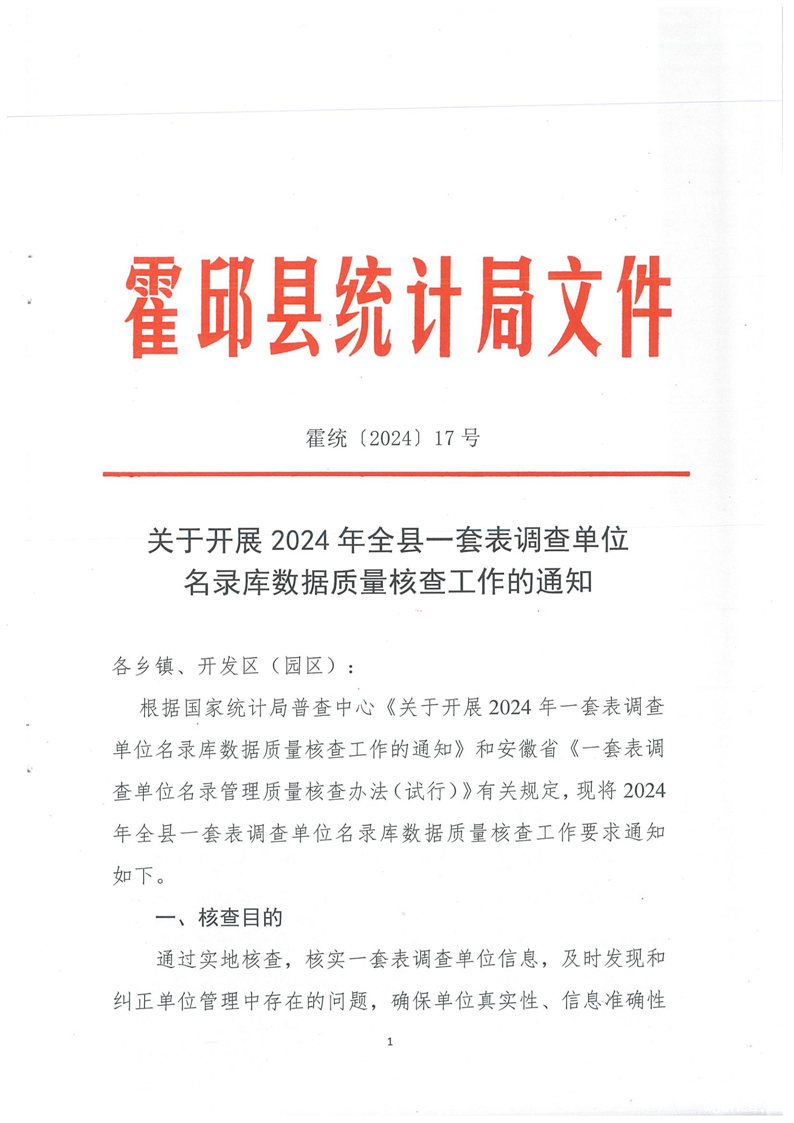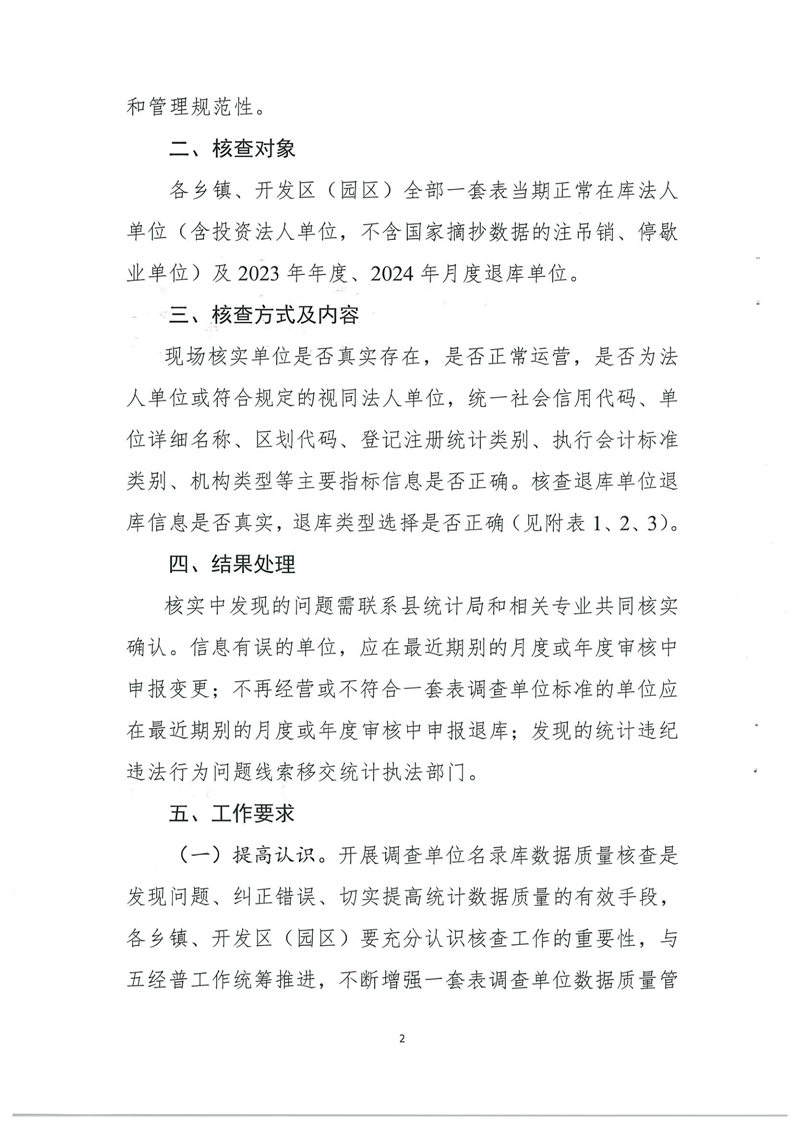 关于开展2024年全县一套表调查单位名录库数据质量核查工作的通知