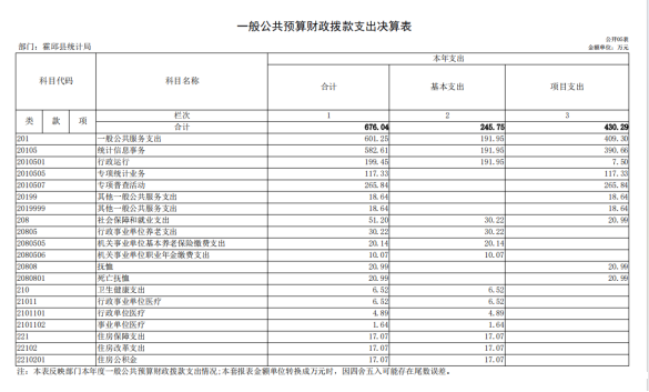 第三部分 霍邱县统计局2023年度部门决算情况说明