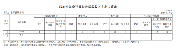 霍邱县统计局没有政府性基金预算收入,也没有使用政府性基金预算安排的支出。