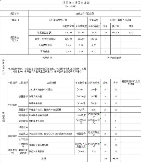 2.绩效评价对象。统计工作项目经费,预算资金129万元。