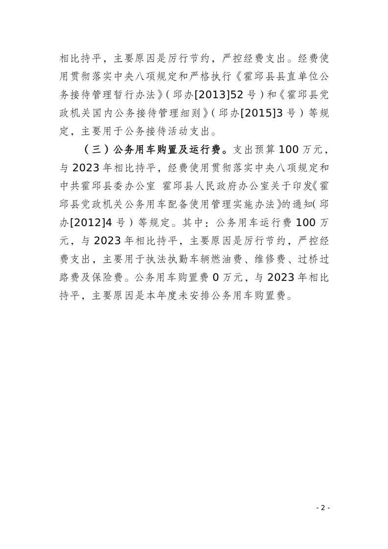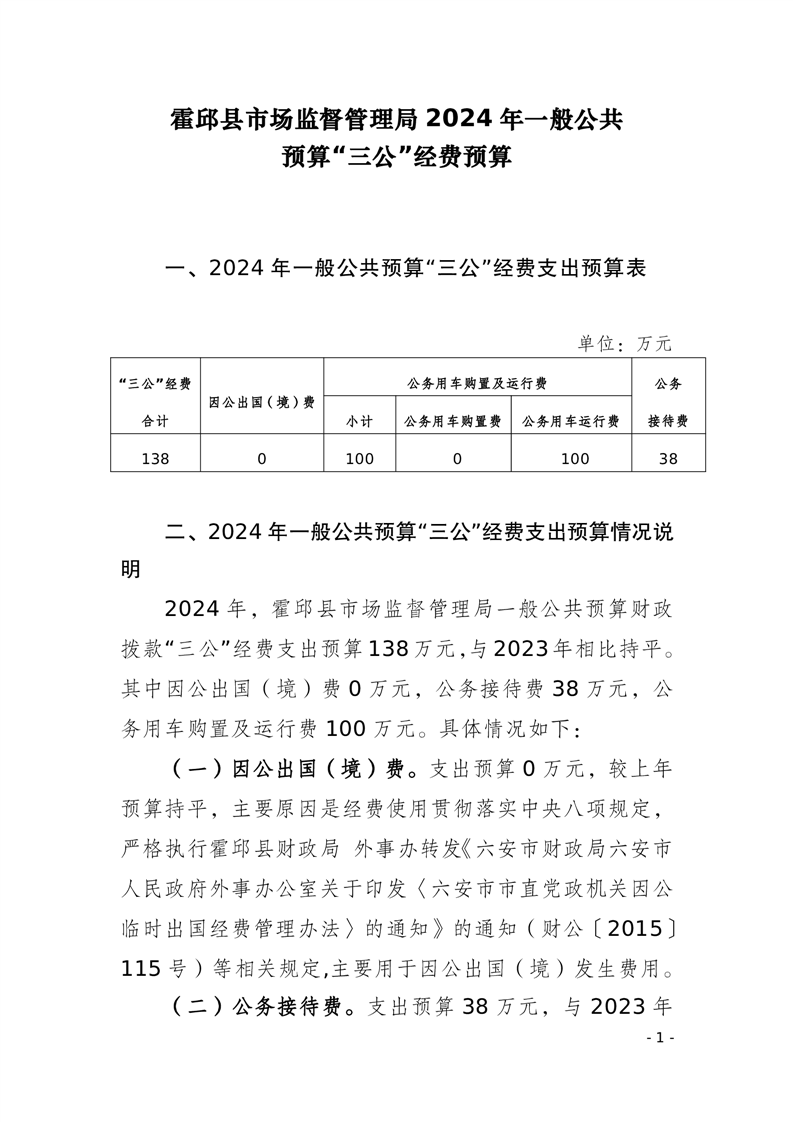 霍邱县市场监督管理局 2024 年一般公共预算“三公”经费情况