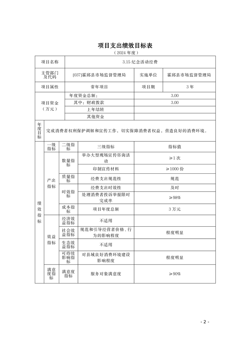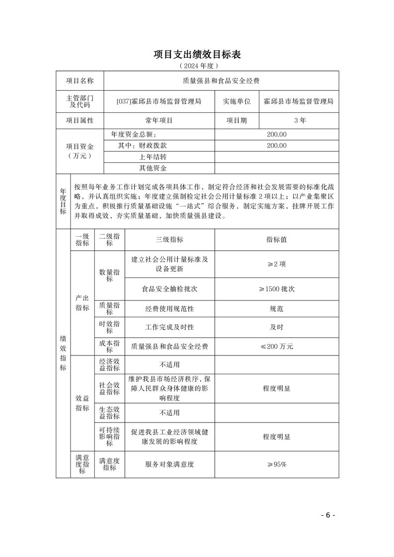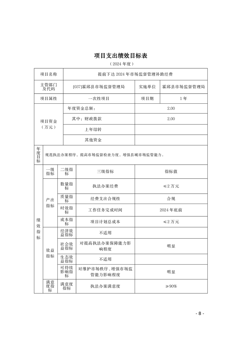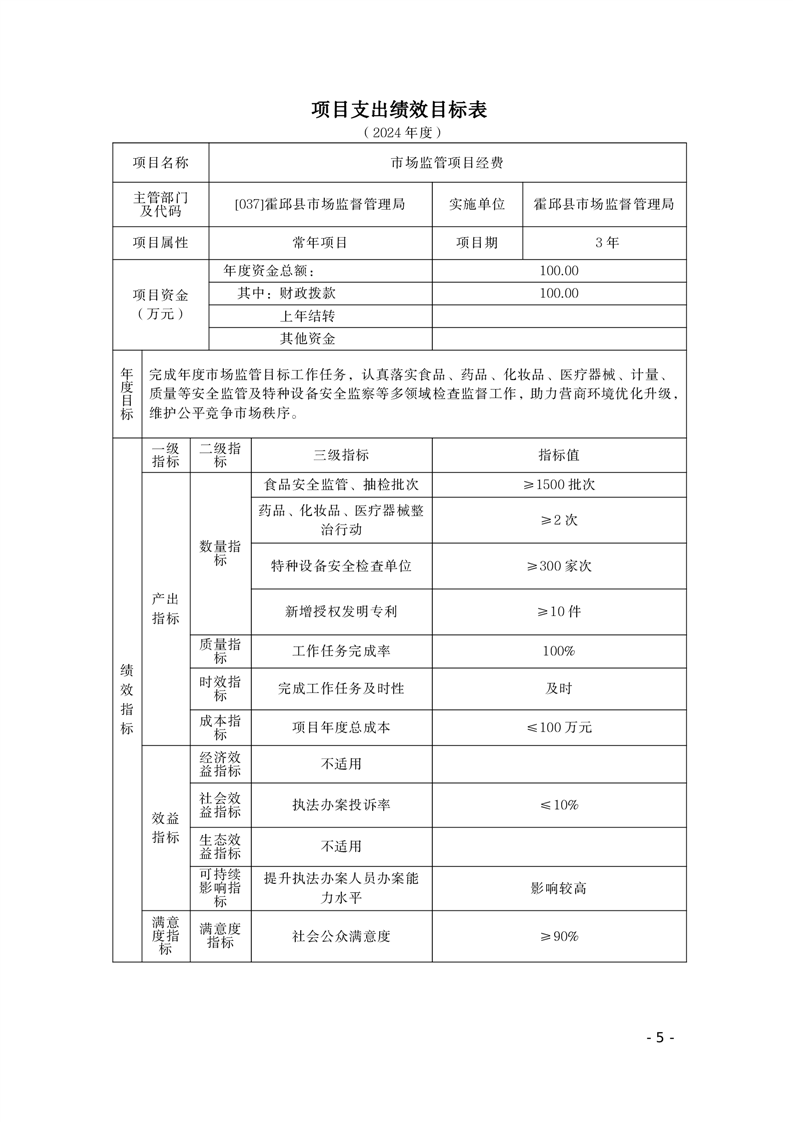 霍邱县市场监督管理局2024年项目支出绩效目标申报表