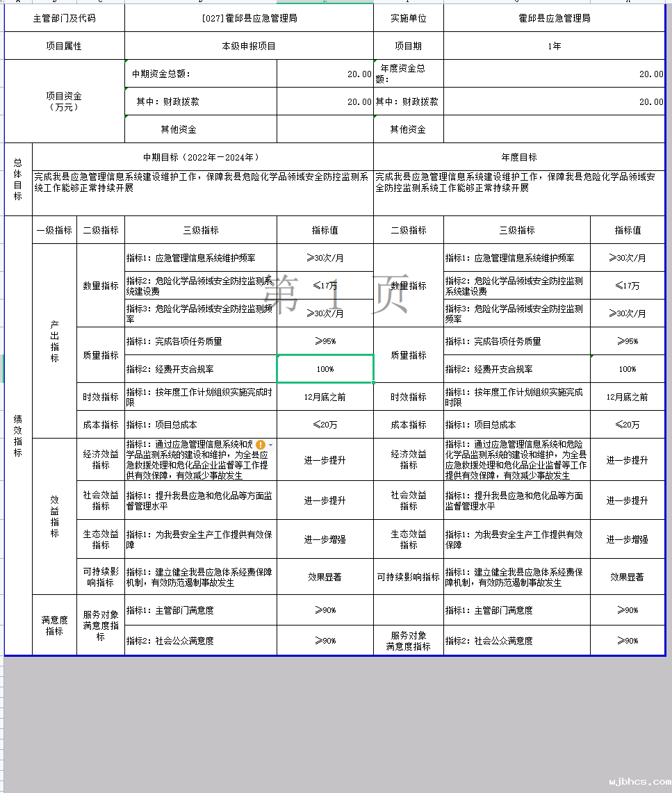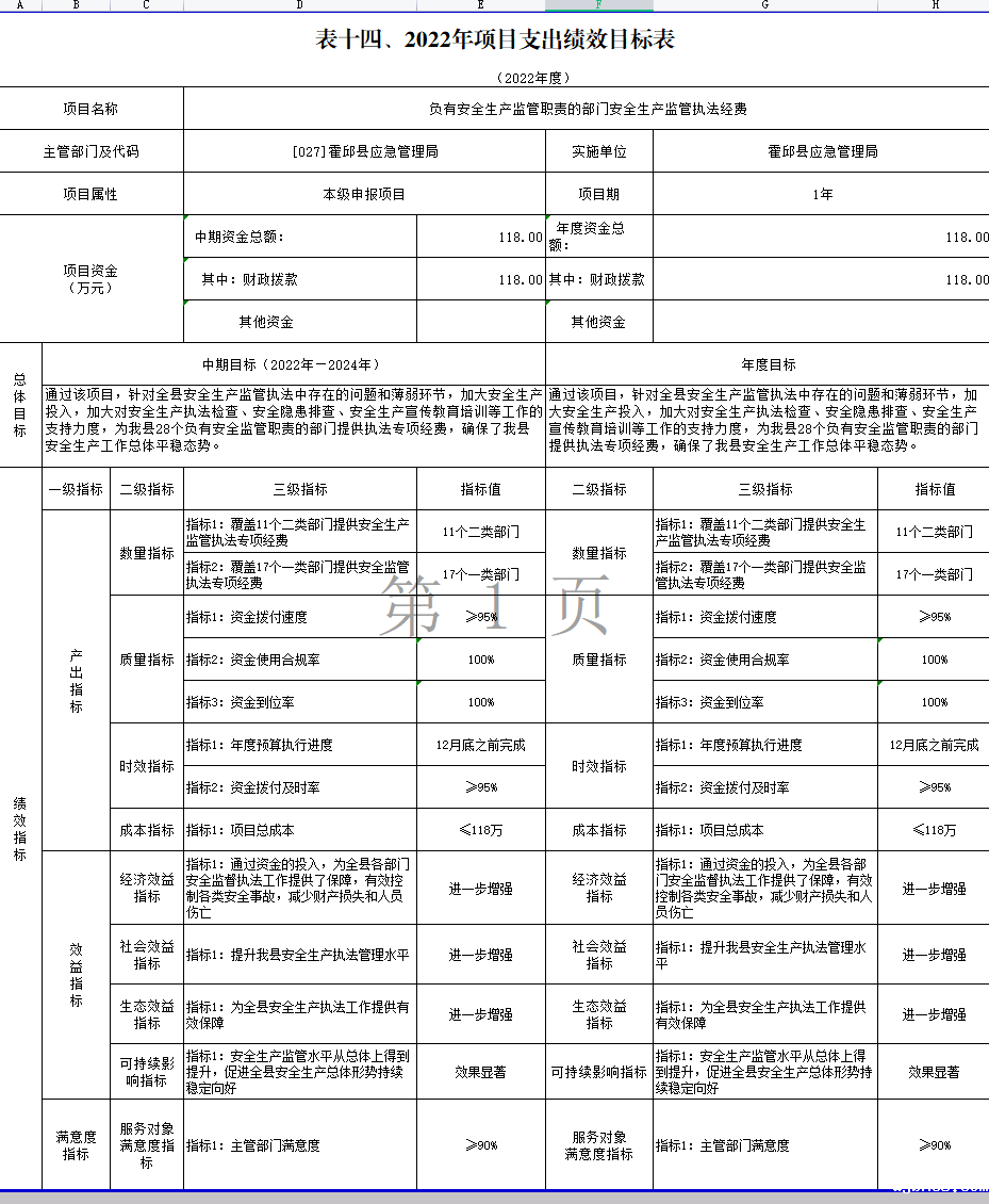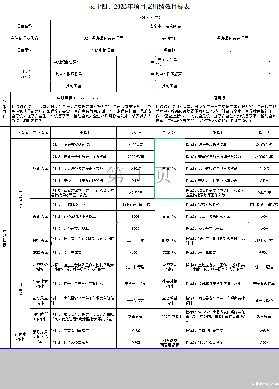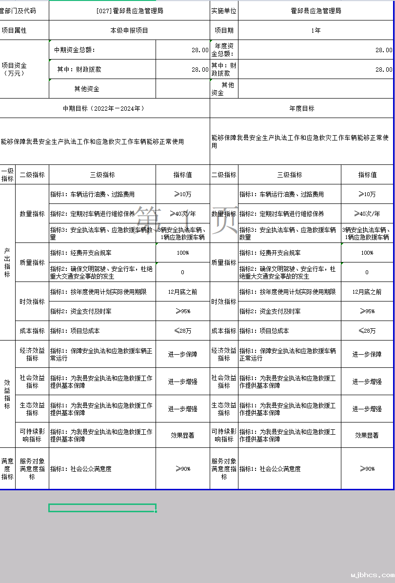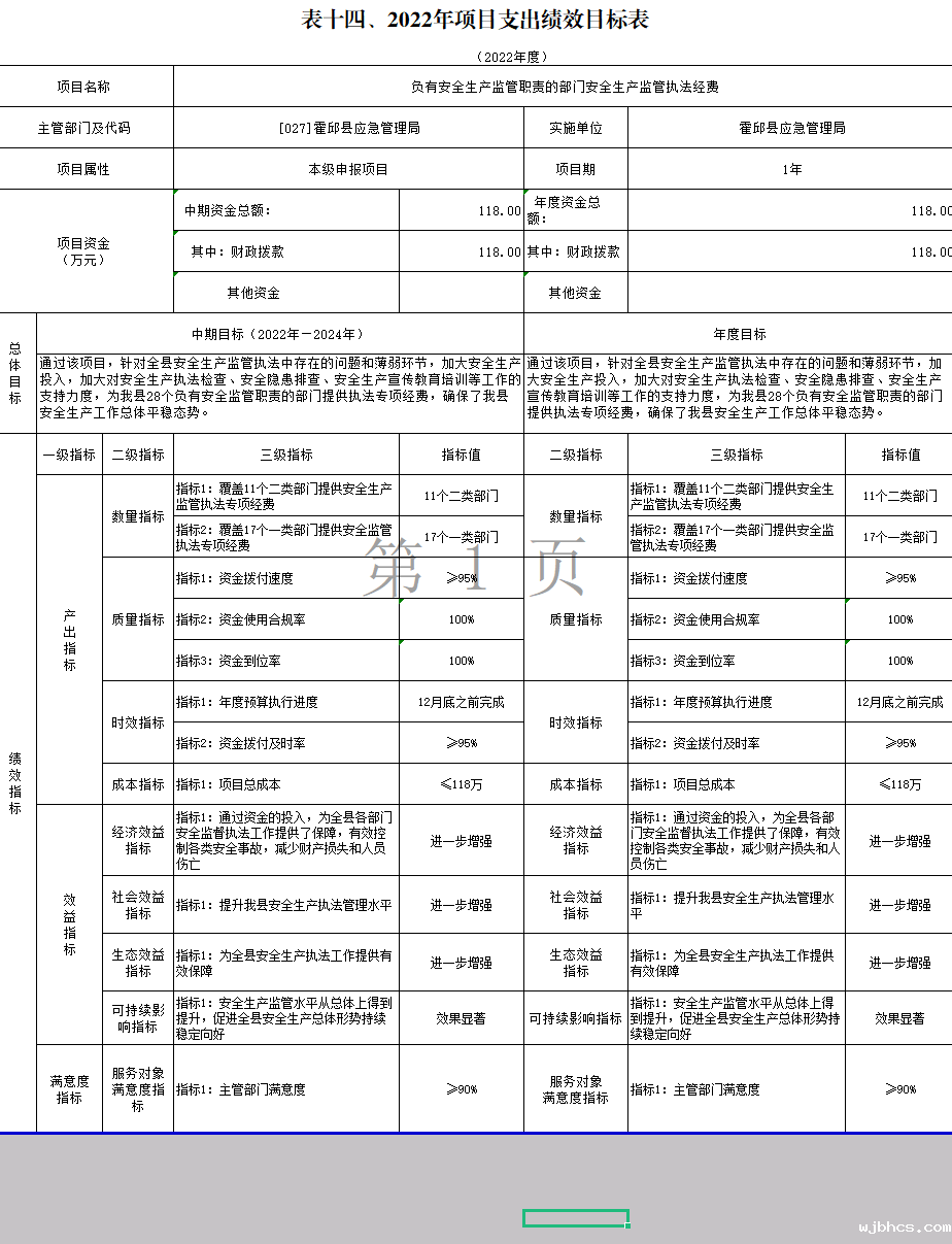 霍邱县应急管理局2022年项目支出绩效目标表