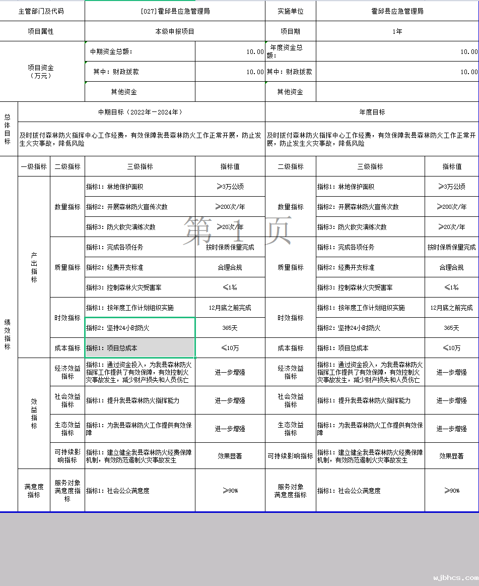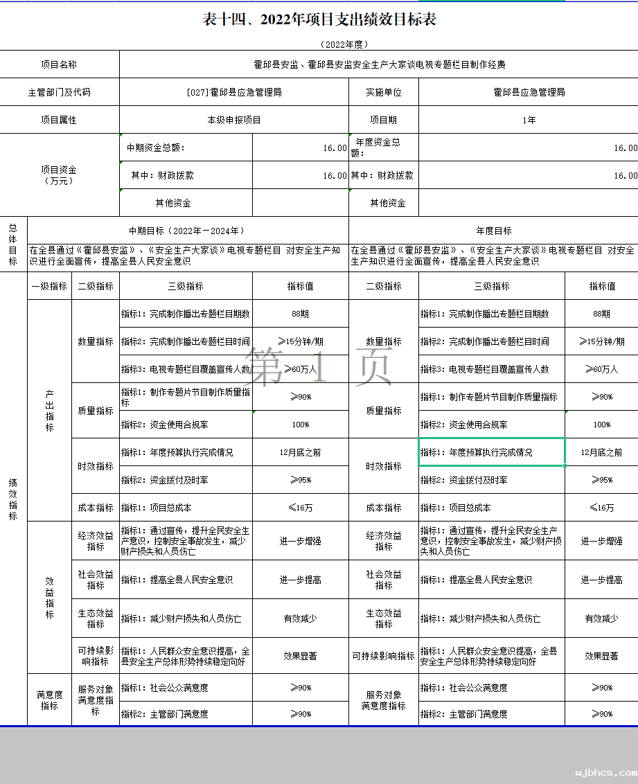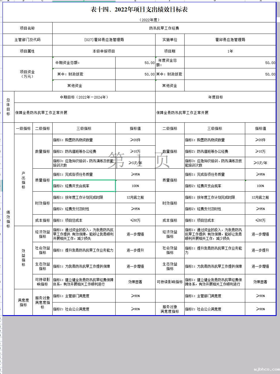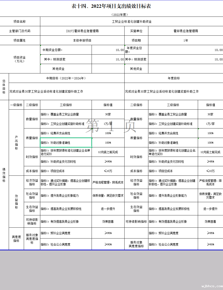 霍邱县应急管理局2022年项目支出绩效目标表