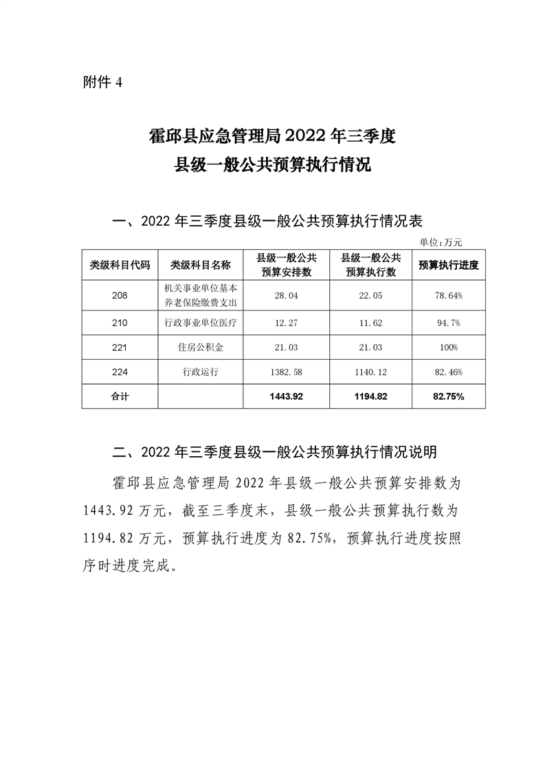 霍邱县应急管理局2022年三季度县级一般公共预算执行情况