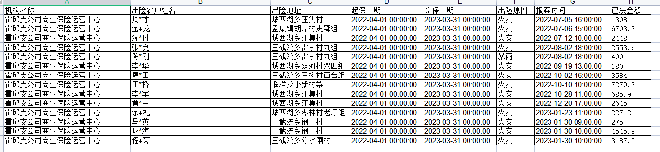 霍邱县农村住房保险试点农房保险理赔对象公示