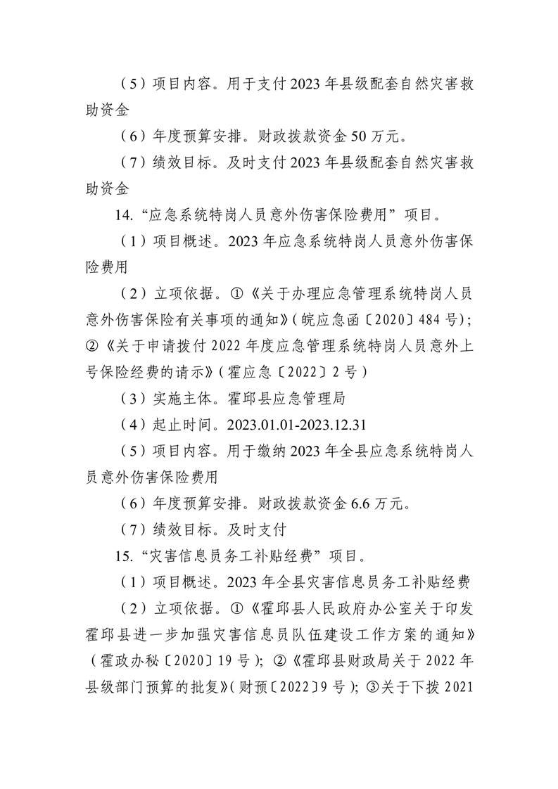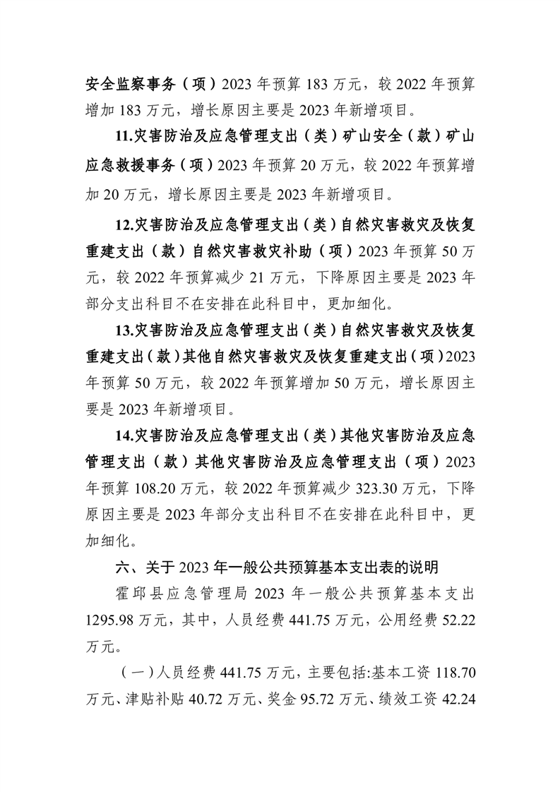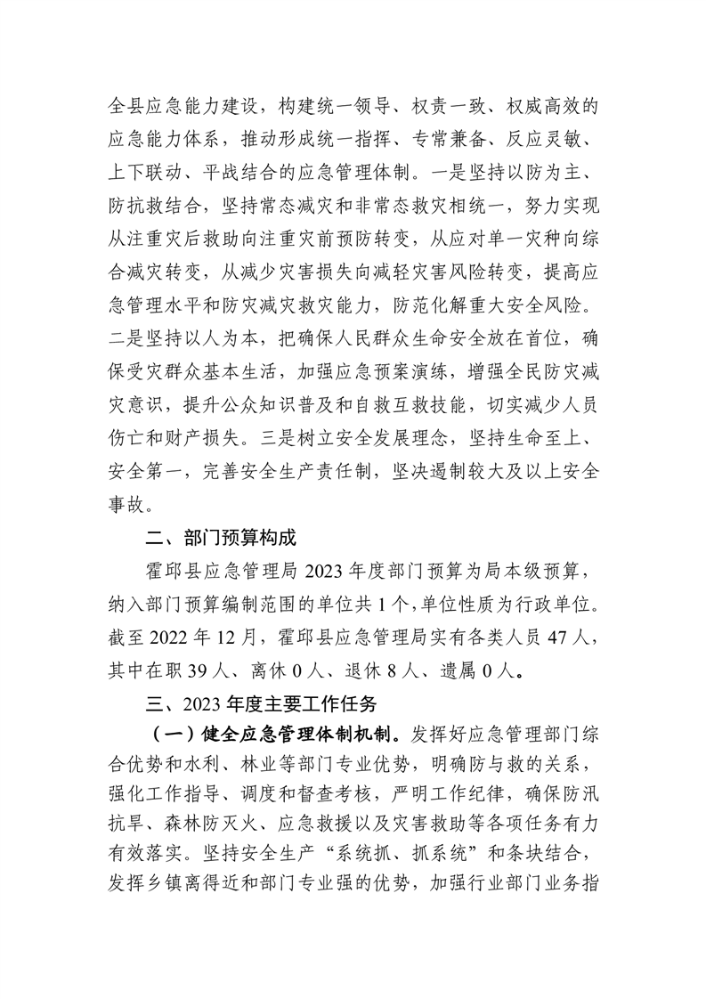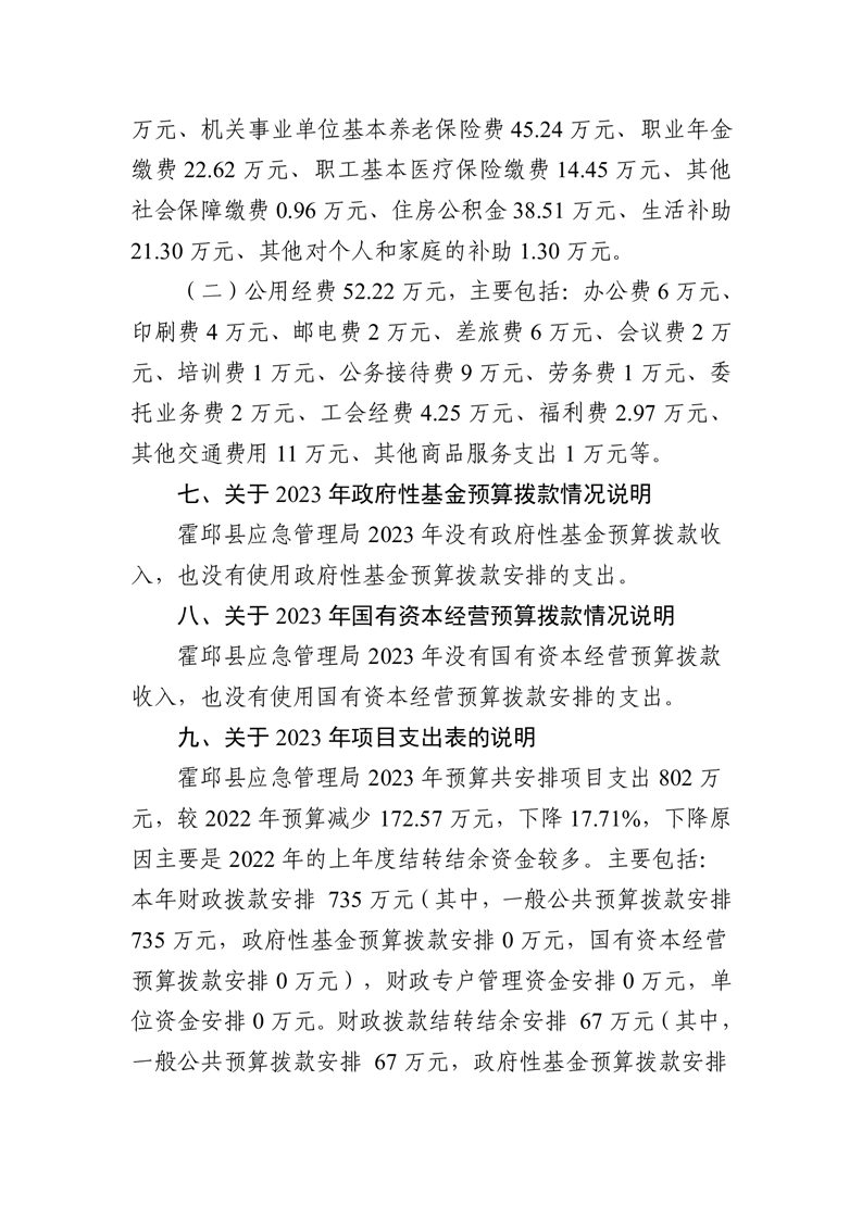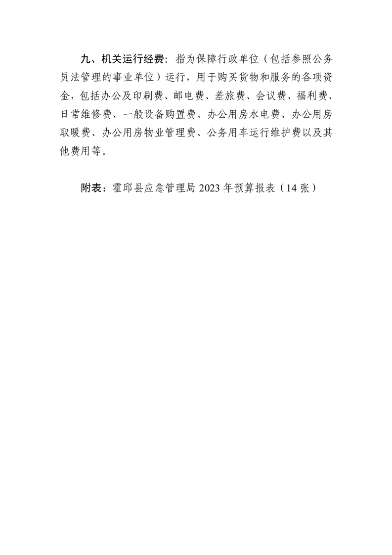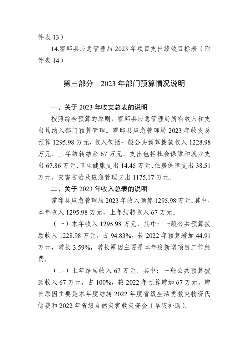 霍邱县应急管理局2023年部门预算安排、报表及说明