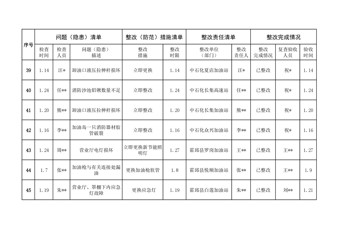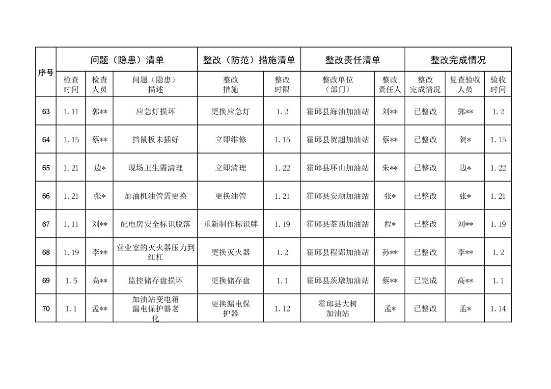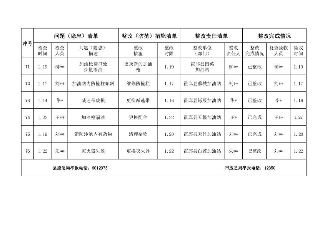 2023年1月霍邱县应急局安全生产隐患排查治理“三清单”(企业自查)
