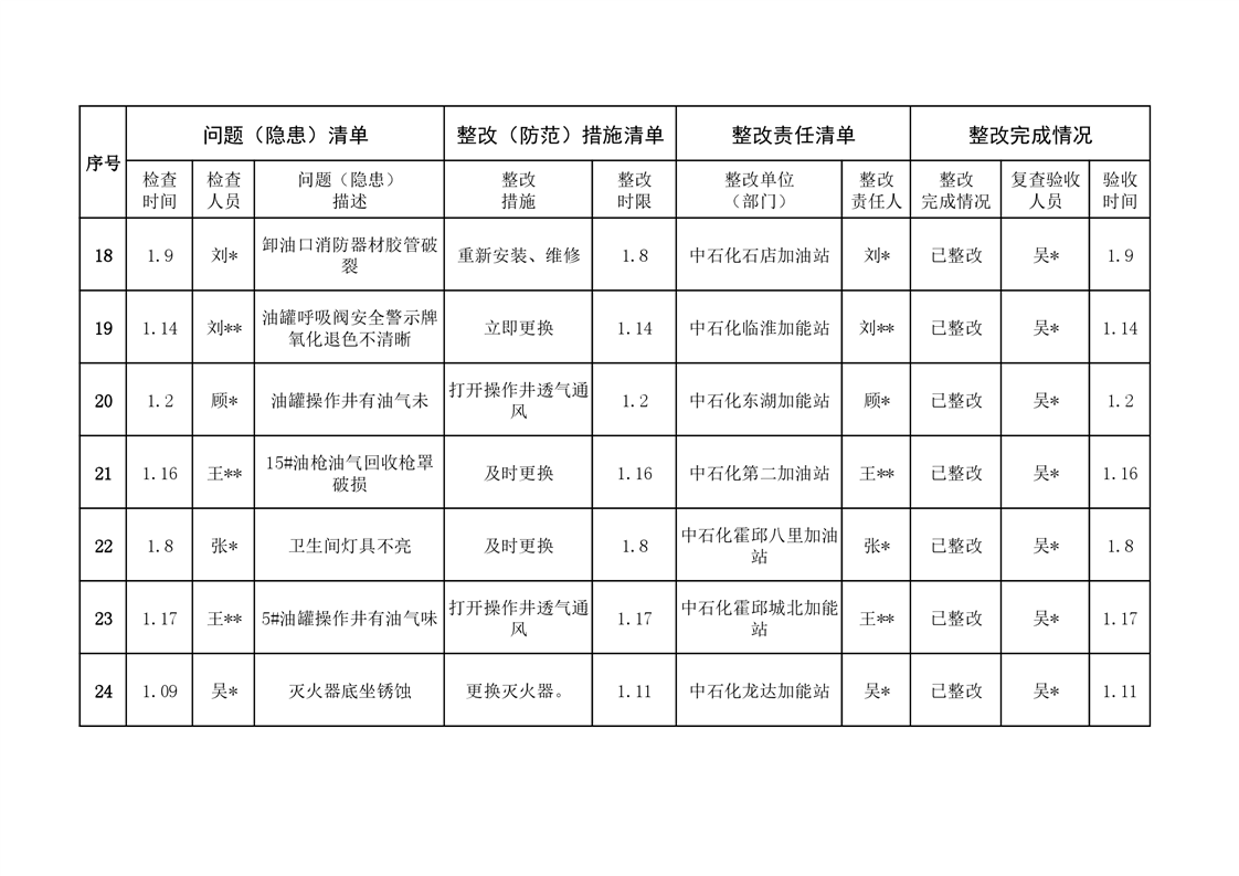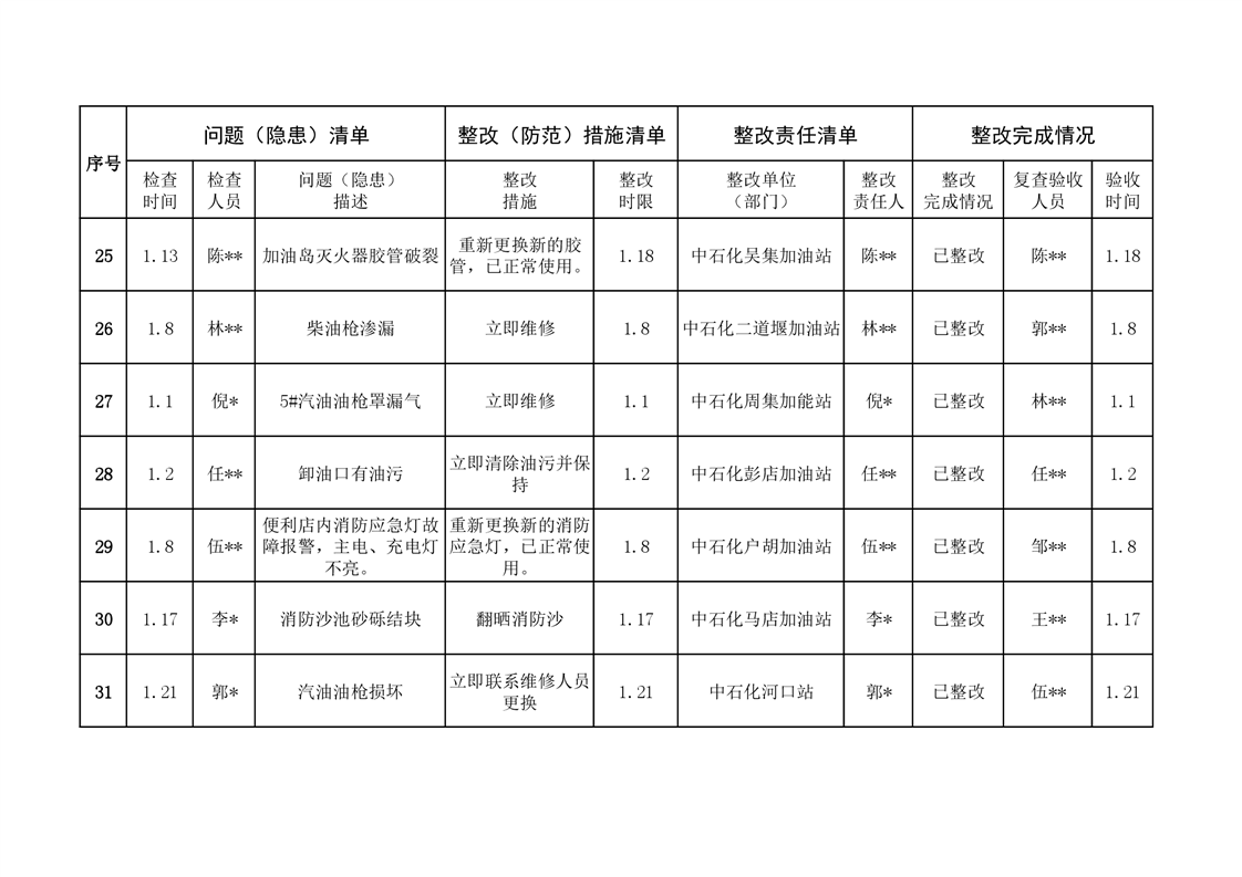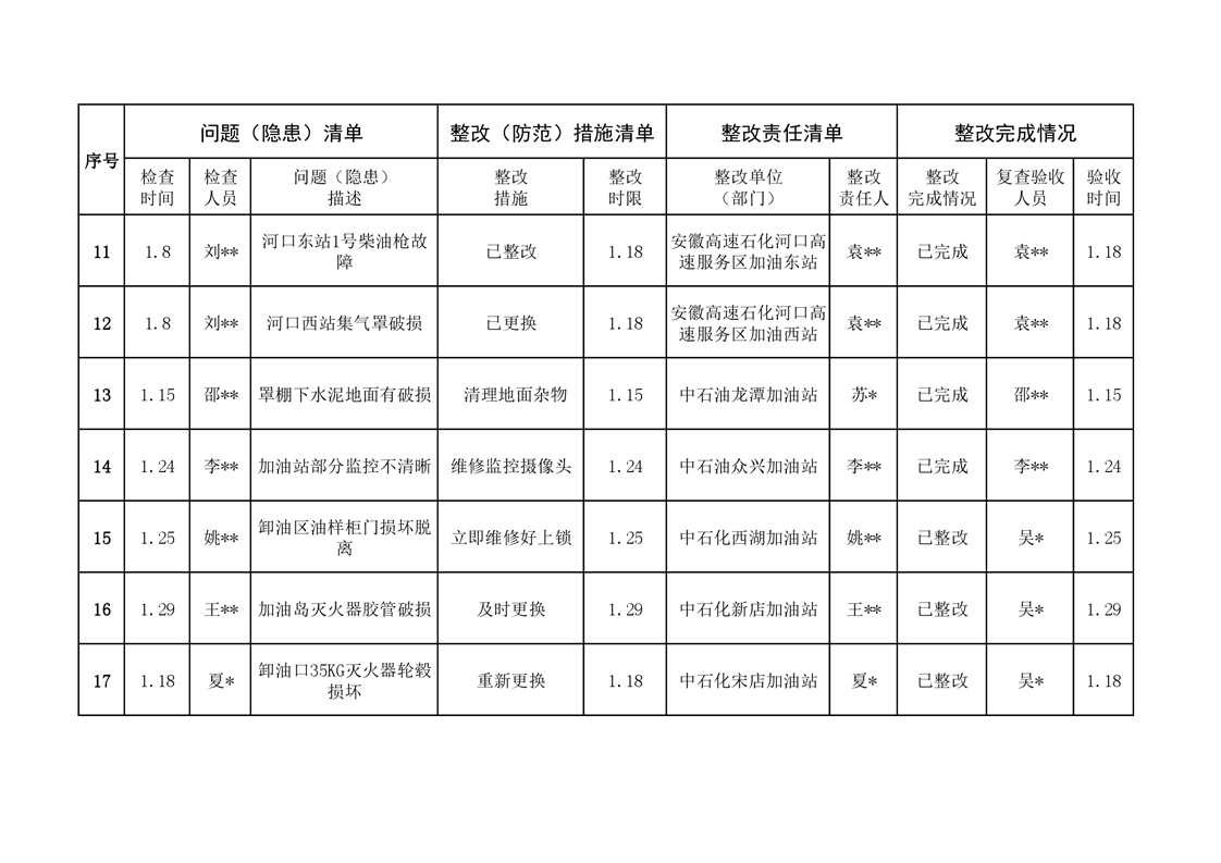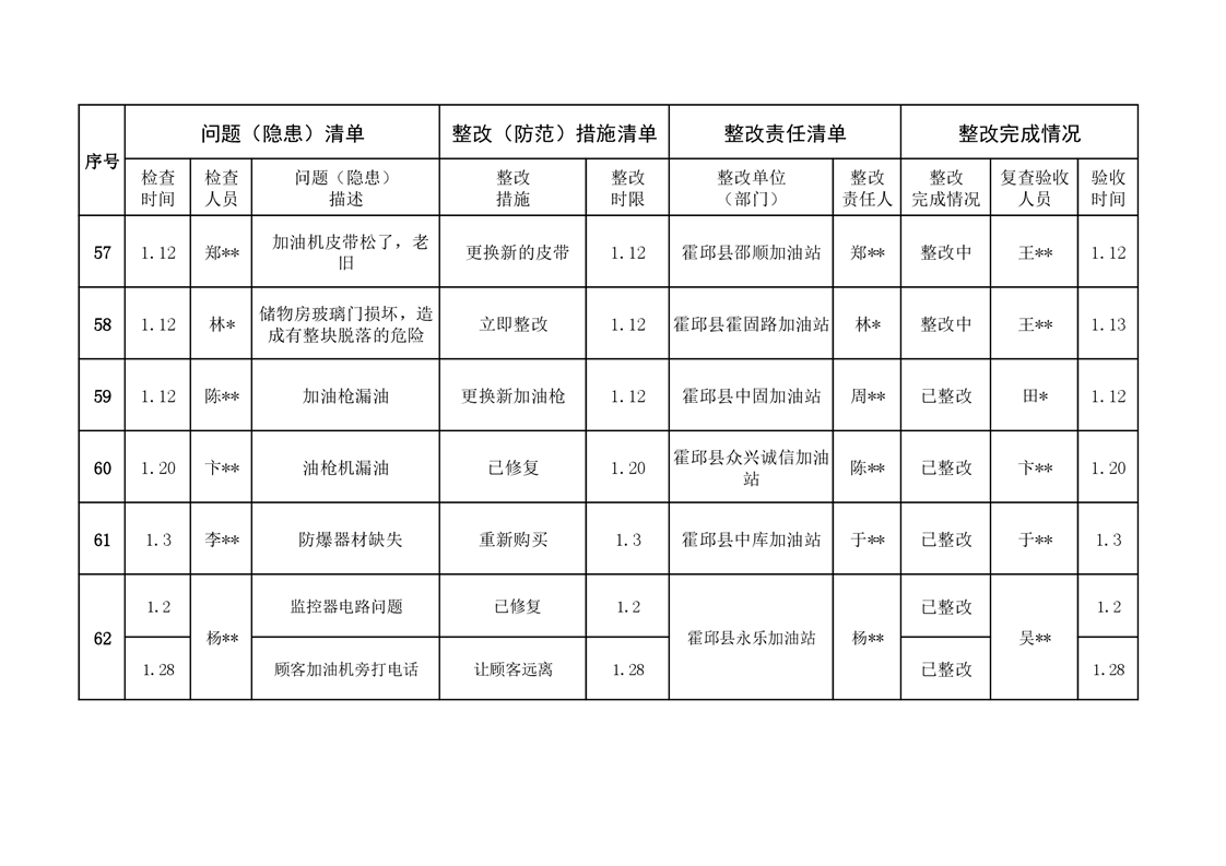2023年1月霍邱县应急局安全生产隐患排查治理“三清单”(企业自查)