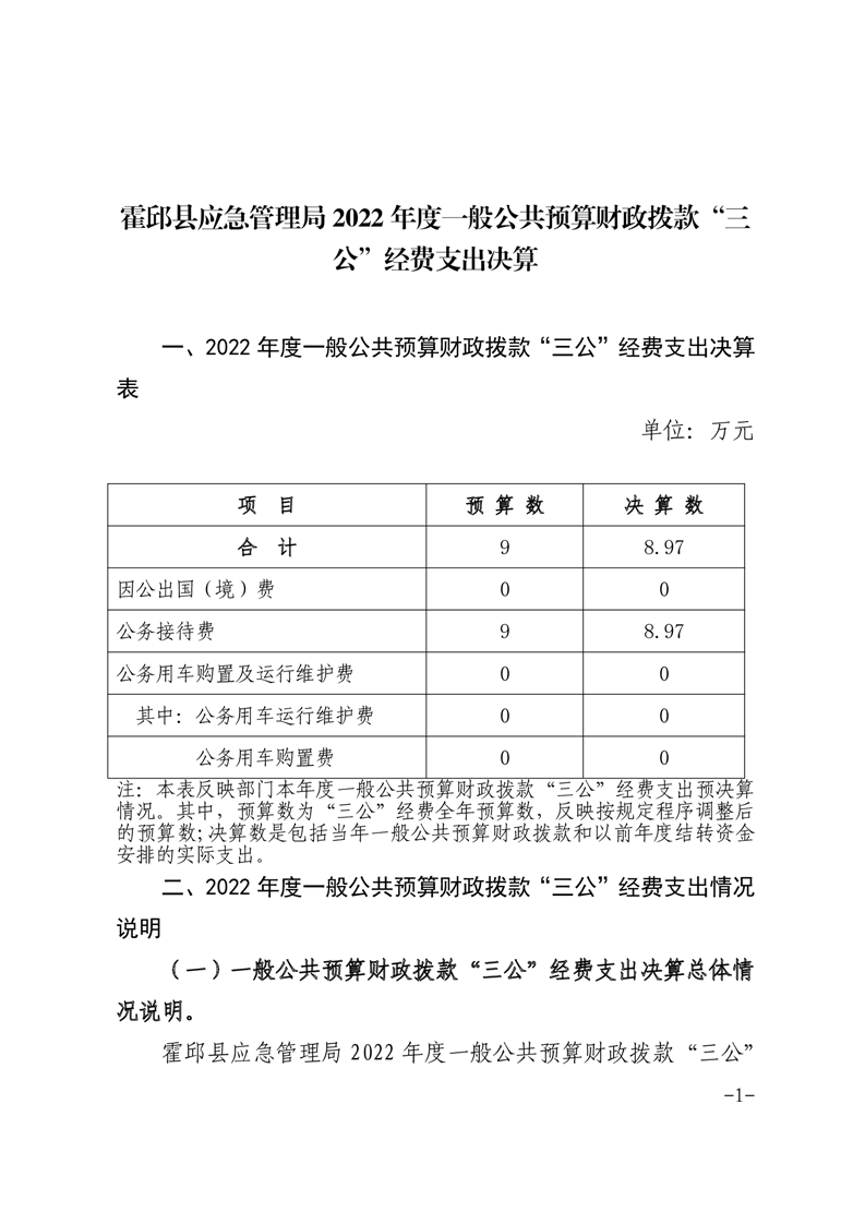 【2022年“三公”经费决算信息】霍邱县应急管理局2022年度一般公共预算财政拨款“三公”经费决算表及说明