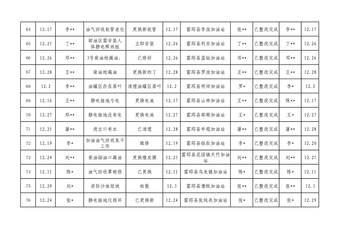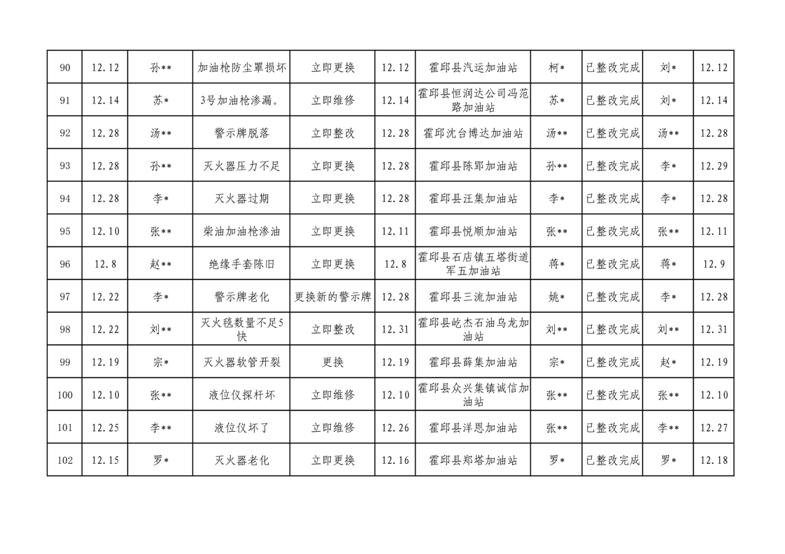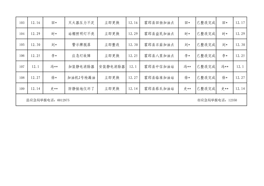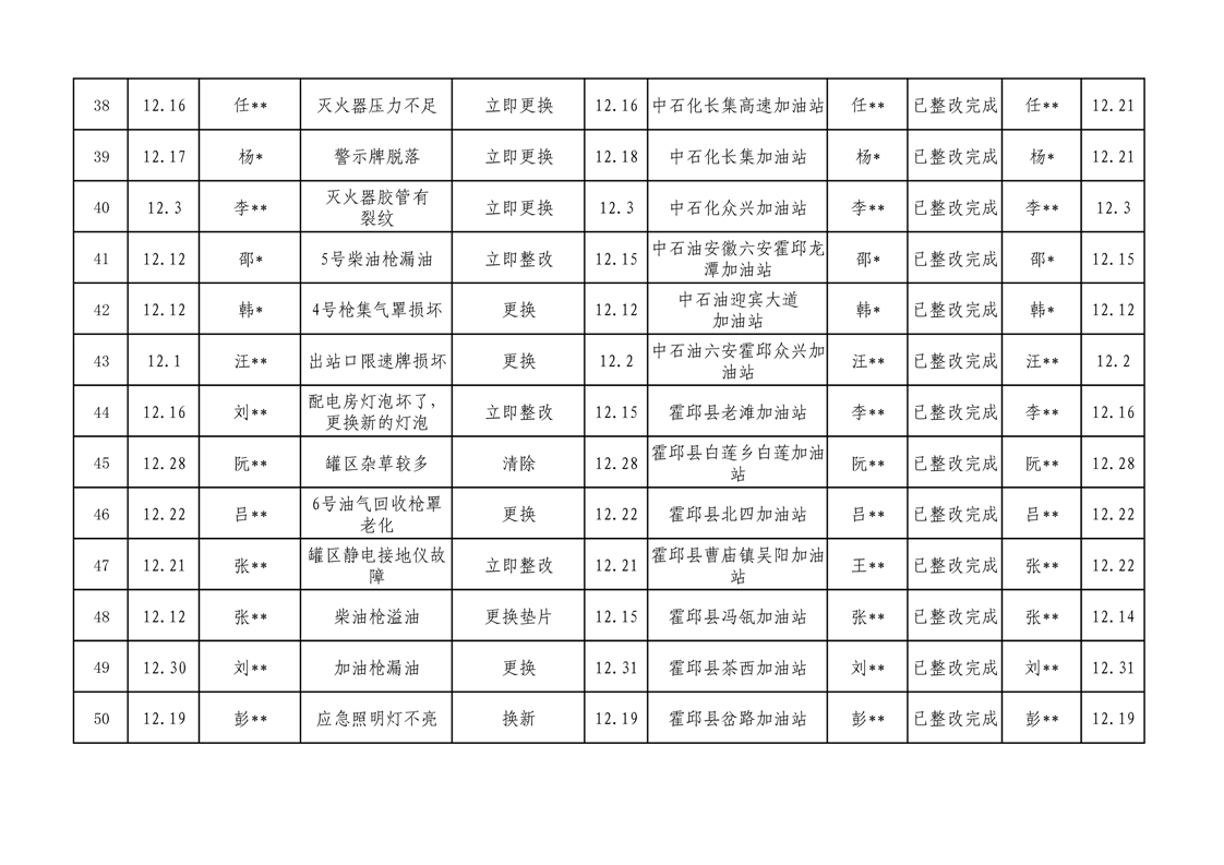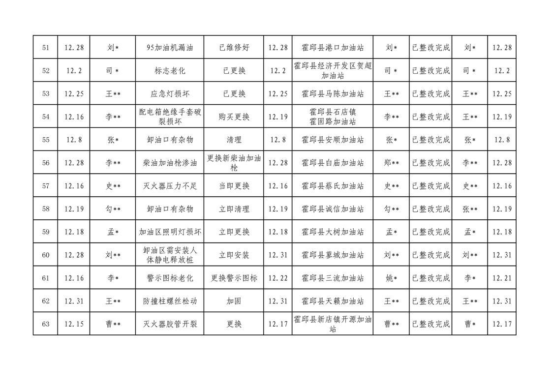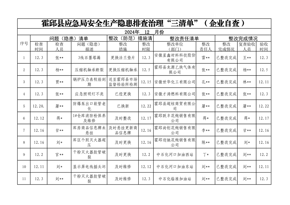 霍邱县应急局安全生产隐患排查治理“三清单”(企业自查)(12月)