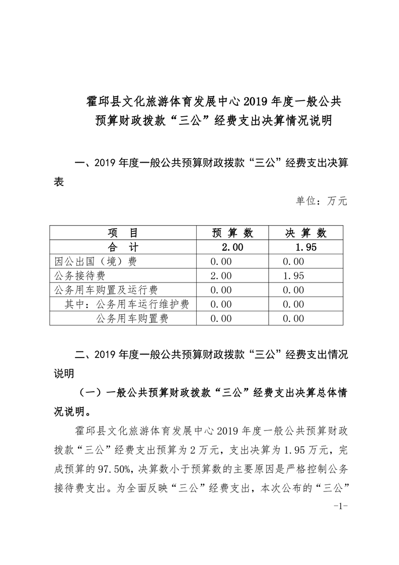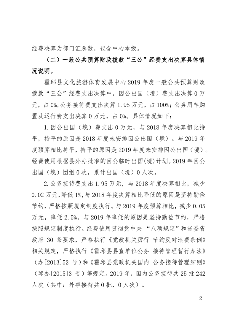 霍邱县文化旅游体育发展中心2019年度一般公共