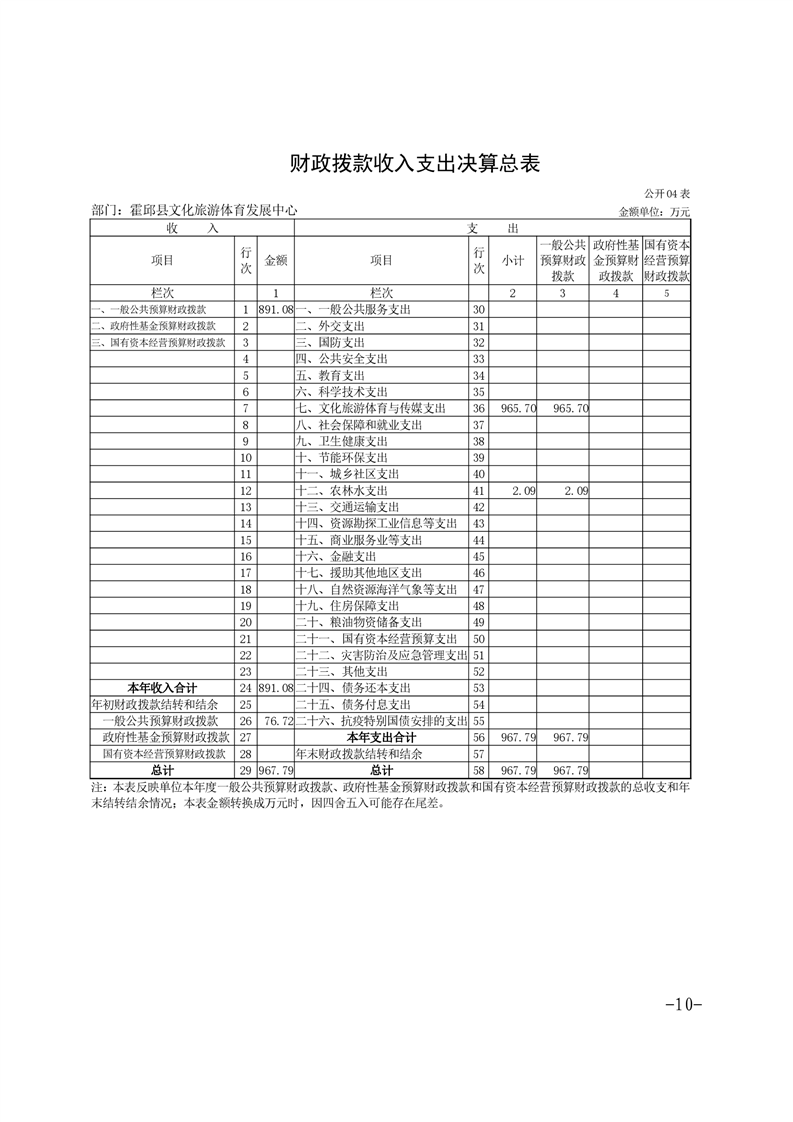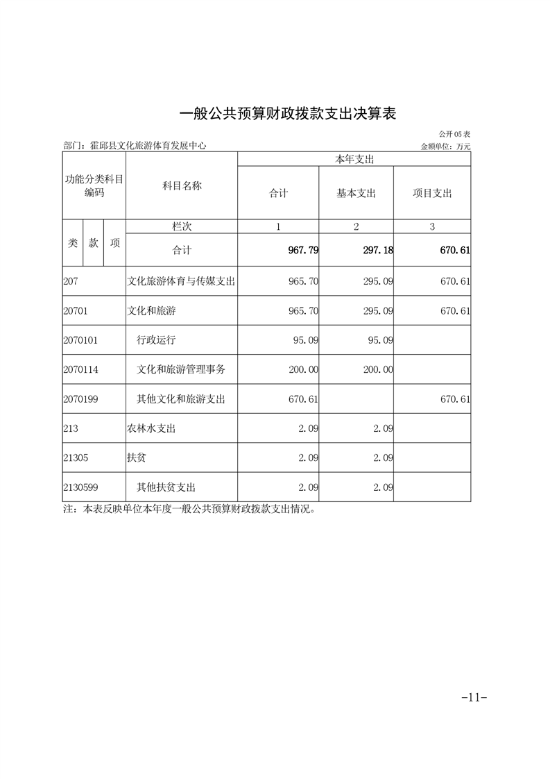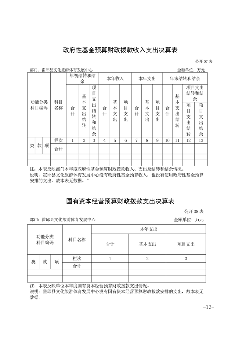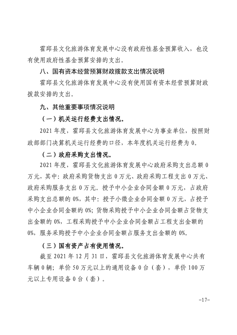 霍邱县文化旅游体育发展中心2021年度部门决算