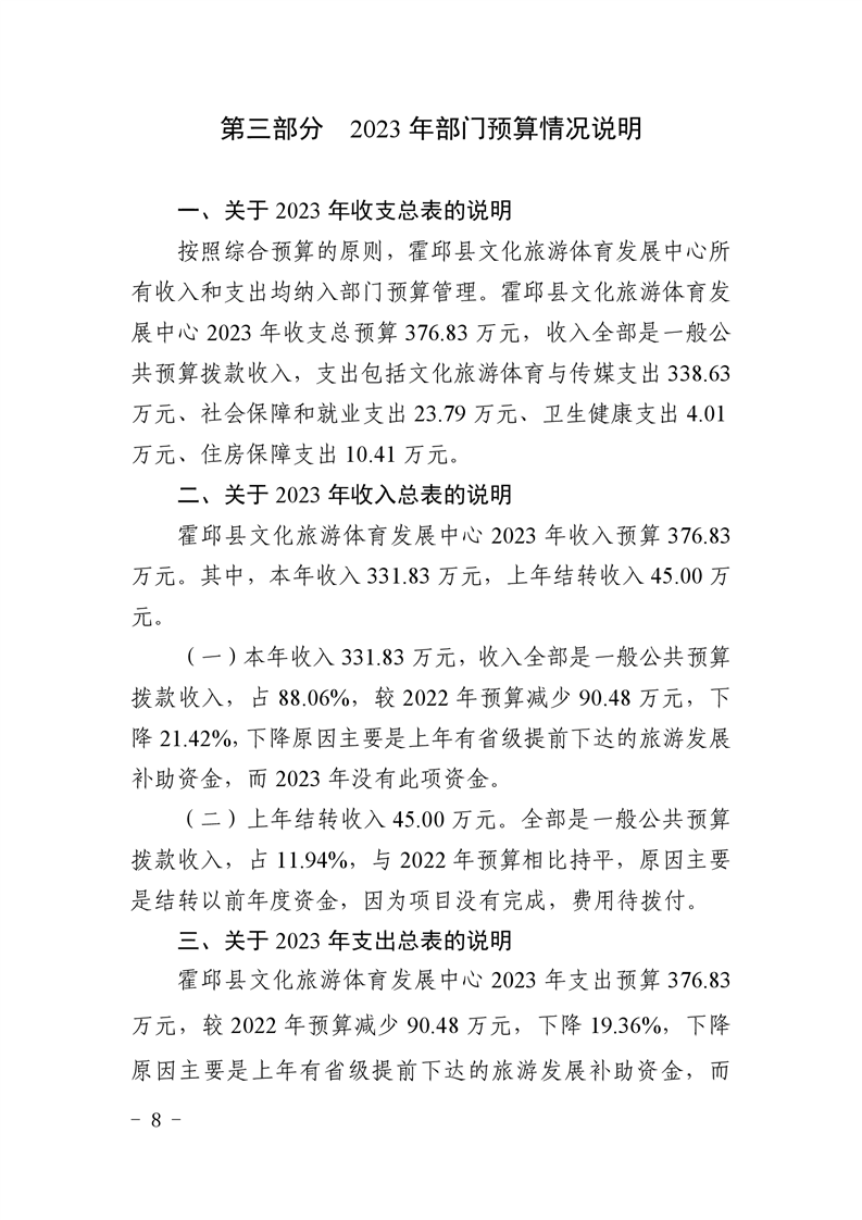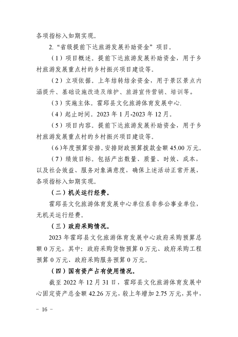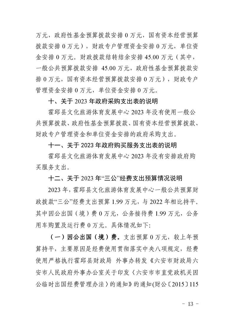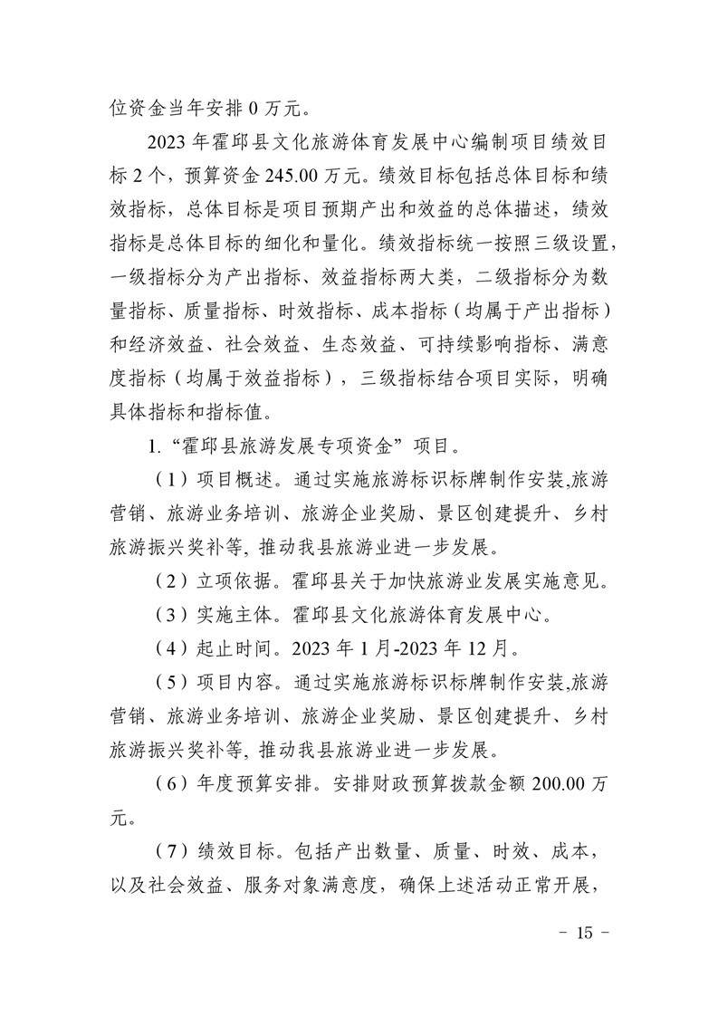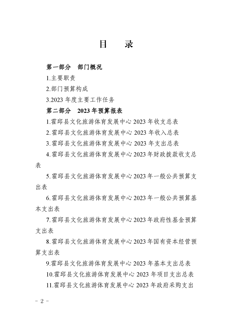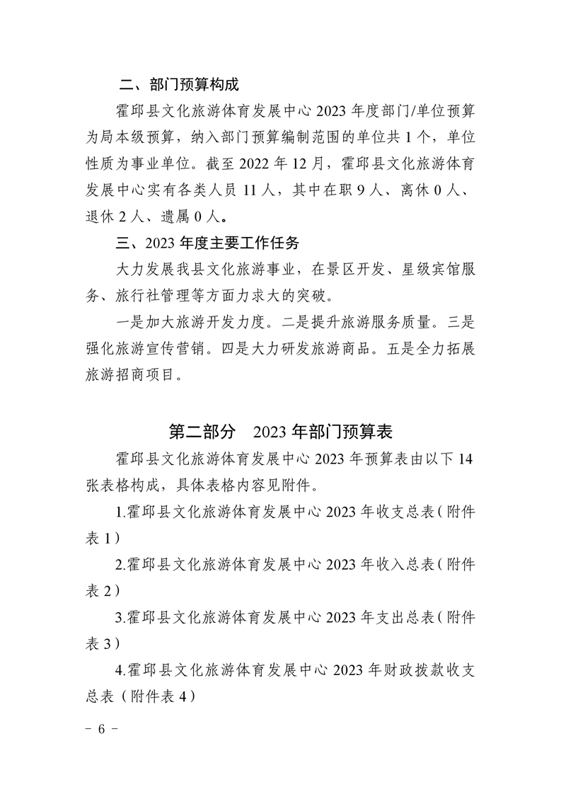 霍邱县文化旅游体育发展中心2023年部门预算公开