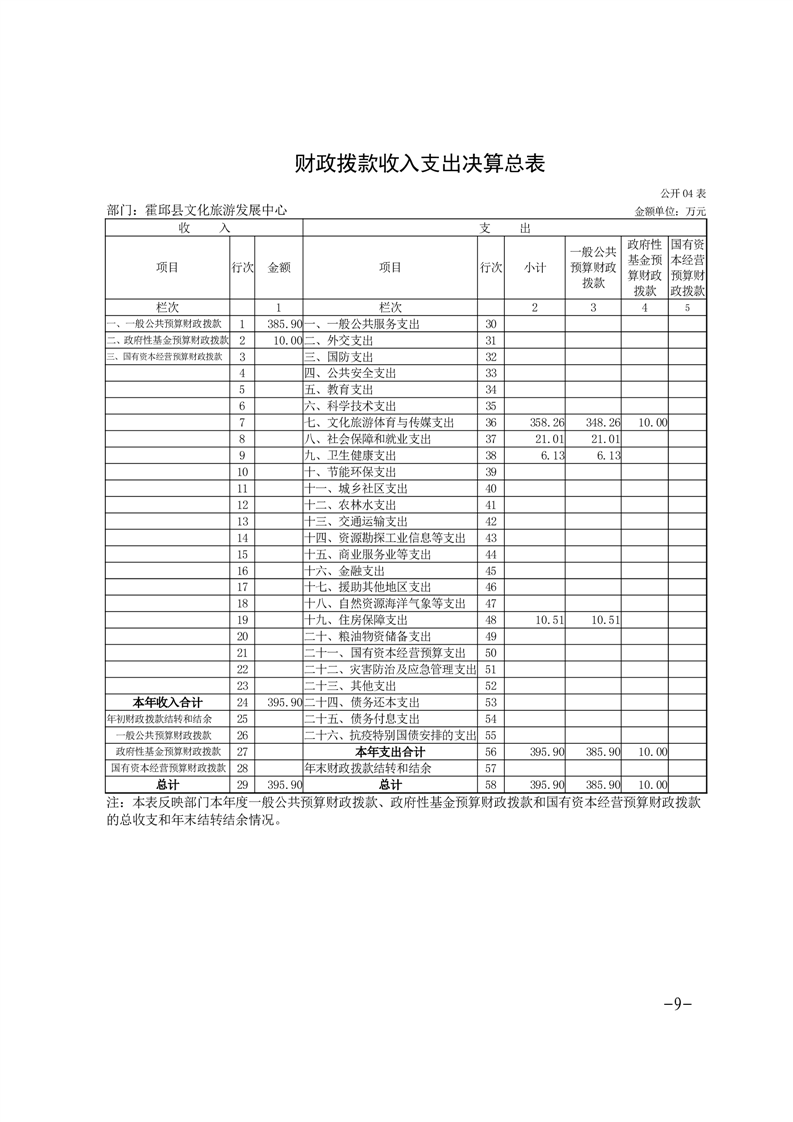 霍邱县文化旅游体育发展中心2024年度部门决算