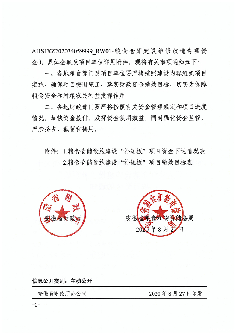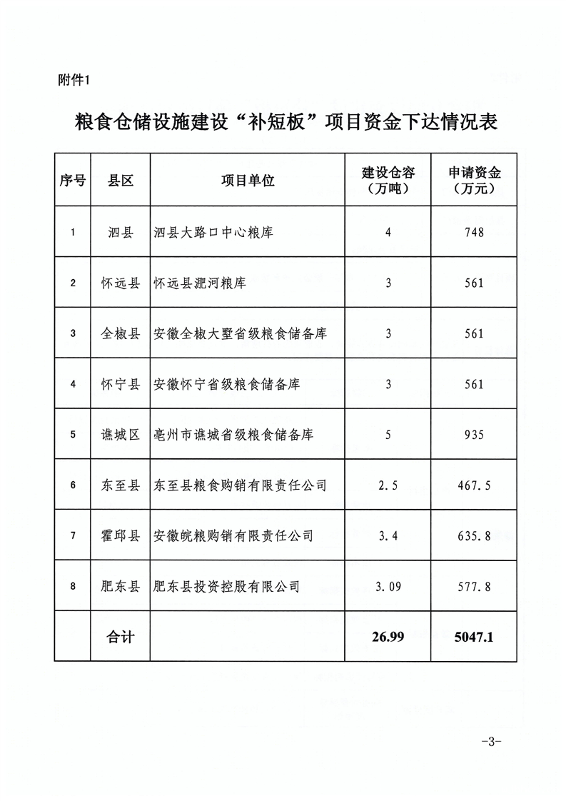 安徽省财政厅安徽省粮食和物资储备局关于下达粮食仓储设施建设“补短板”项目资金的通知