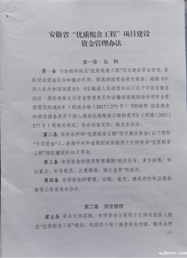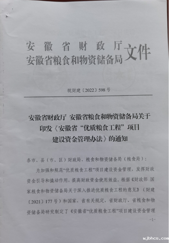 安徽省财政厅 安徽省粮食和物资储备局关于印发《安徽省“优质粮食工程”项目建设资金管理办法的通知》
