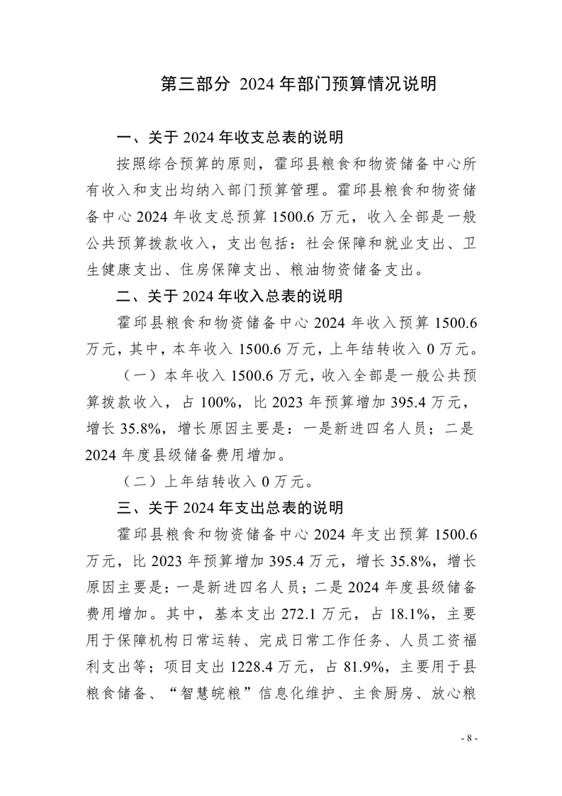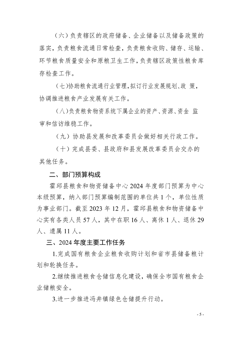霍邱县粮食和物资储备中心2024年部门预算公开