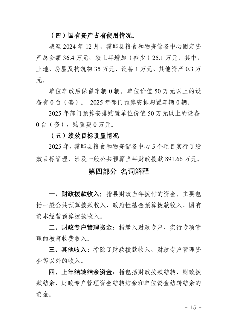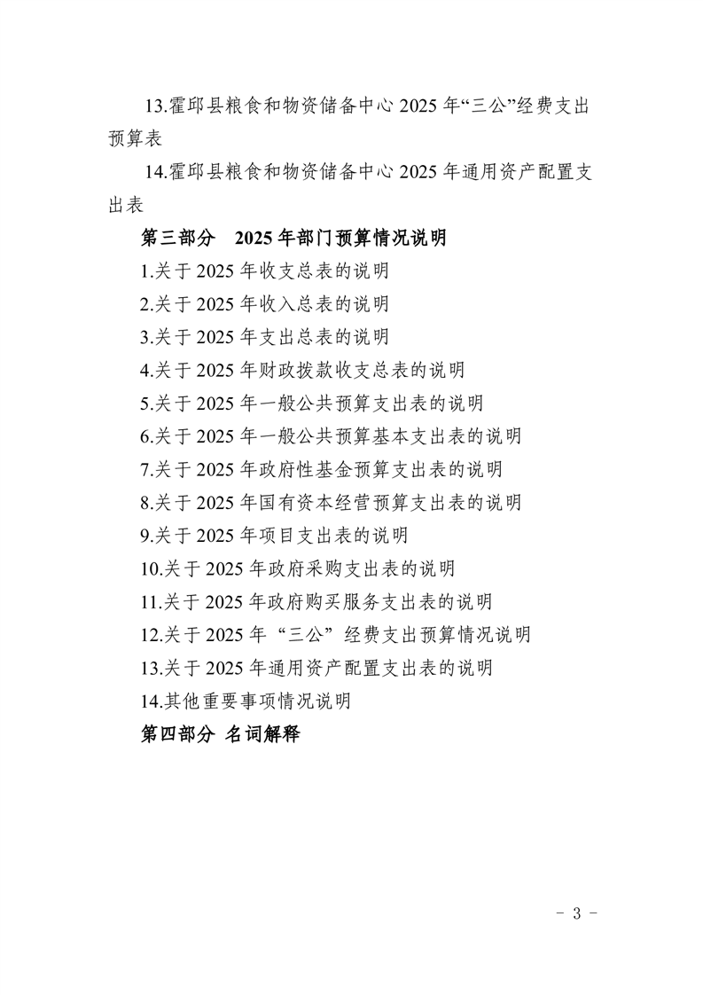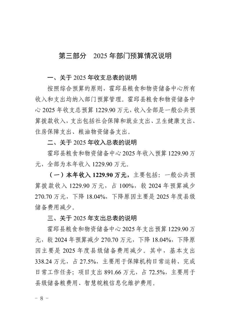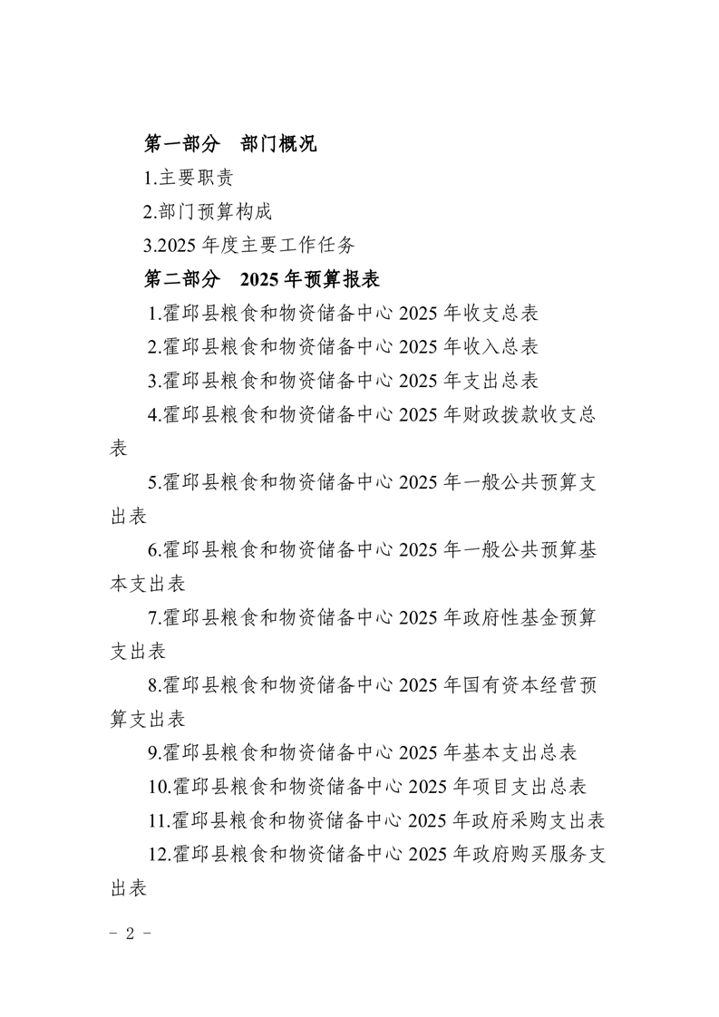 霍邱县粮食和物资储备中心2025年部门预算公开