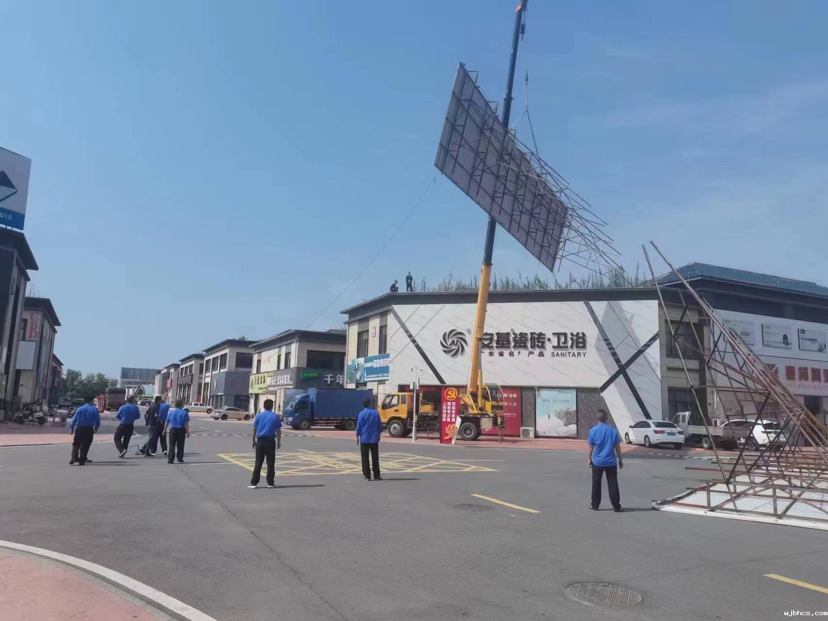 违规设置的户外广告牌不仅影响市容市貌,还存在较大的安全隐患。7月24日、25日,霍邱县城管执法局城南大队联合物业公司对锦绣新世界、徽商建材大市场破旧锈蚀的楼顶及墙体广告牌进行依法拆除,消除安全隐患;在拆除过程中,城管执法队员设置警戒区域,维护现场秩序,出动大型升降吊车,督促专业人员安全规范施工,确保拆除行动依法有序进行,此次行动共拆除楼顶及墙体广告牌8处,约400平方米,拆除后及时清理钢架废料,还广大人民群众一个安全舒适的生活环境。