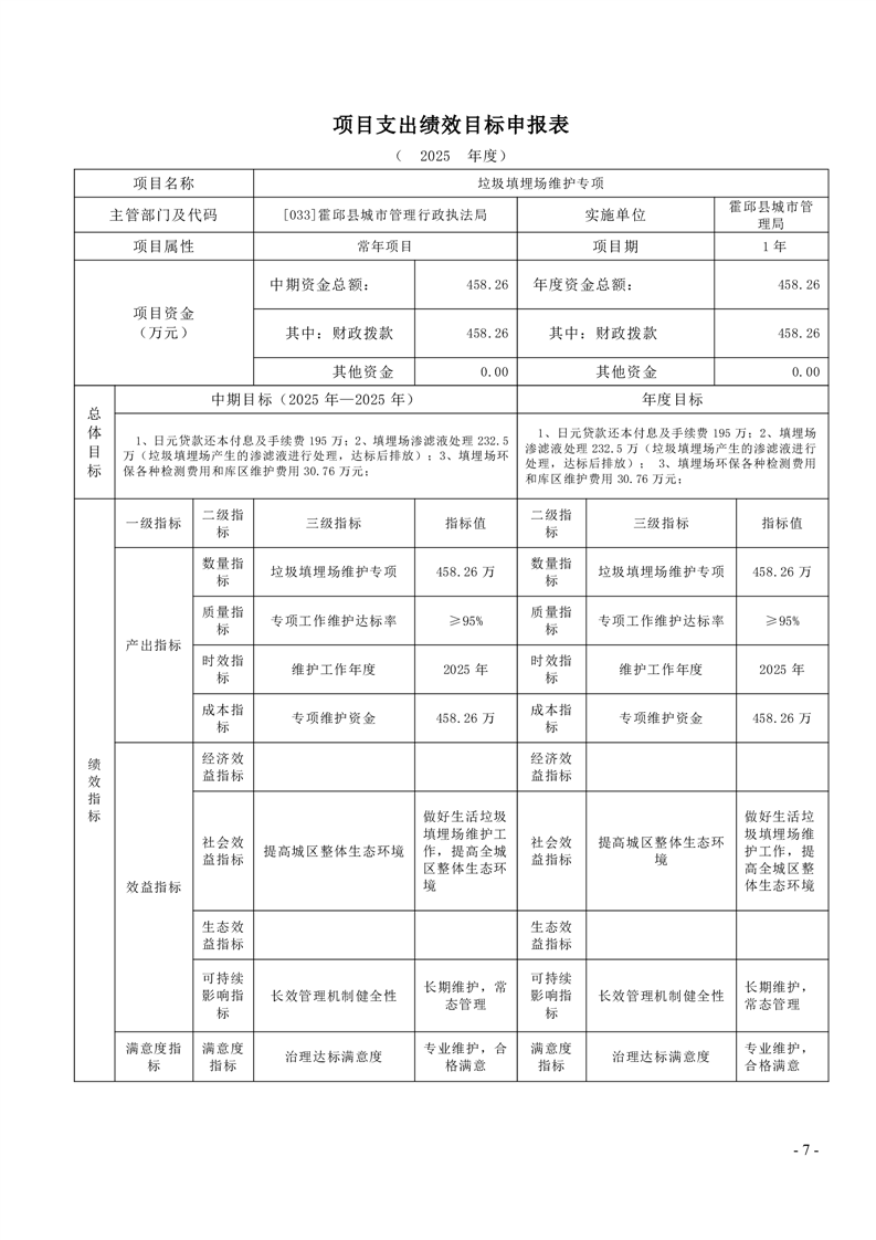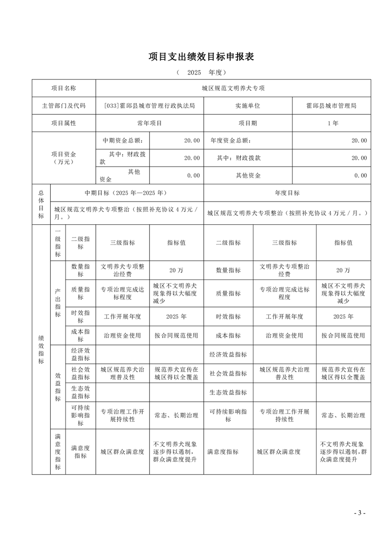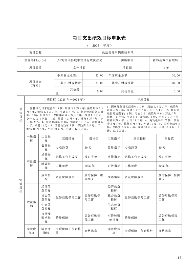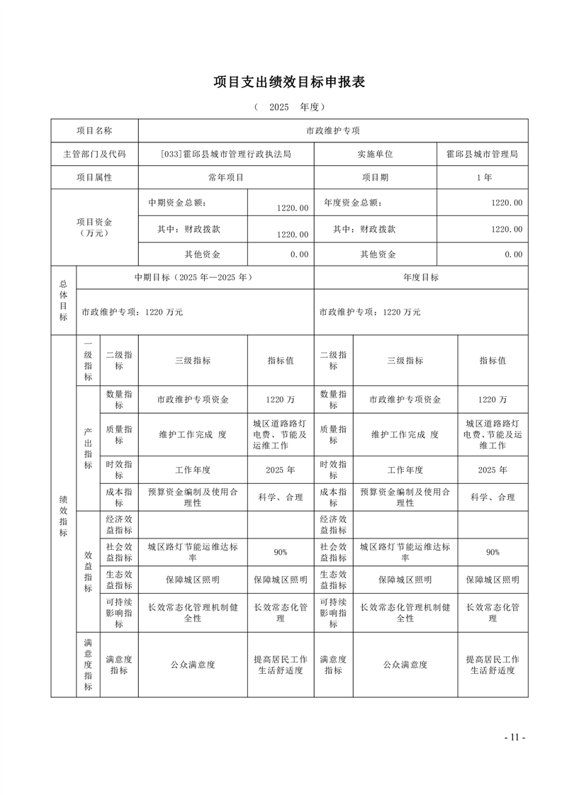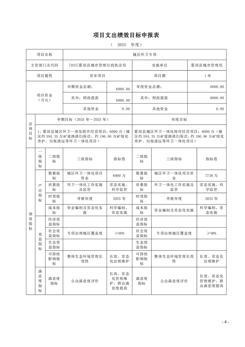 霍邱县城市管理局2025年度项目绩效目标表
