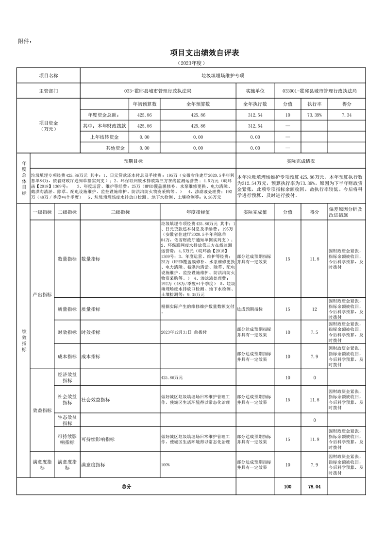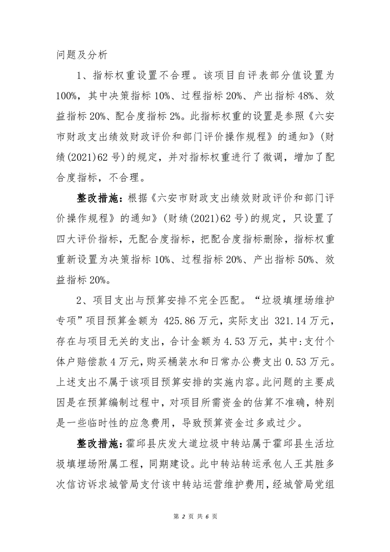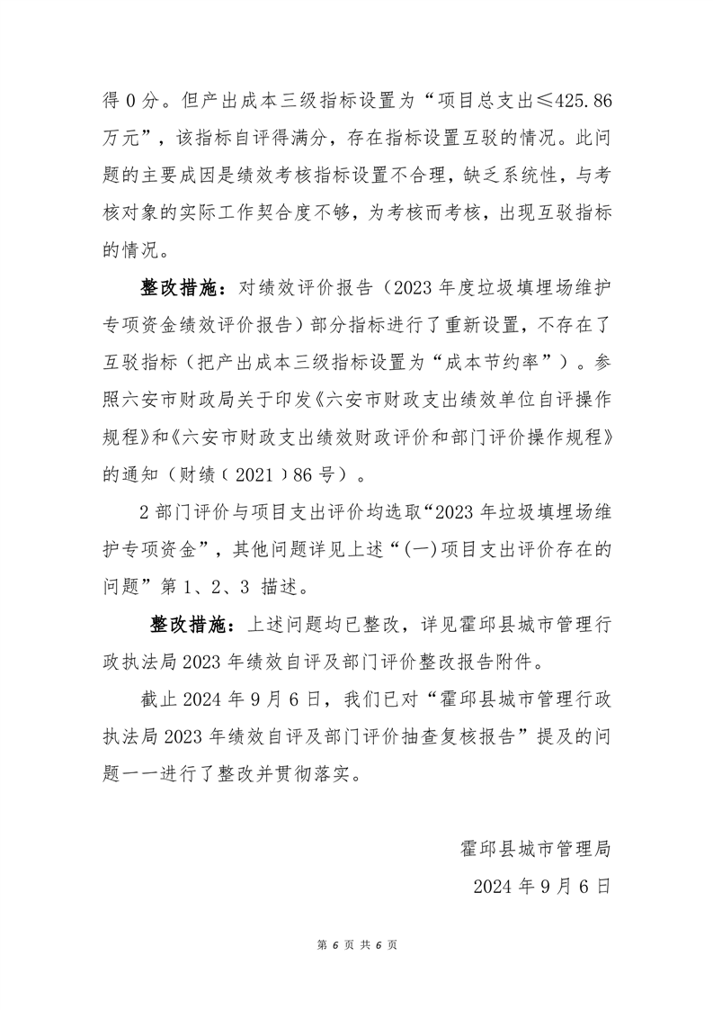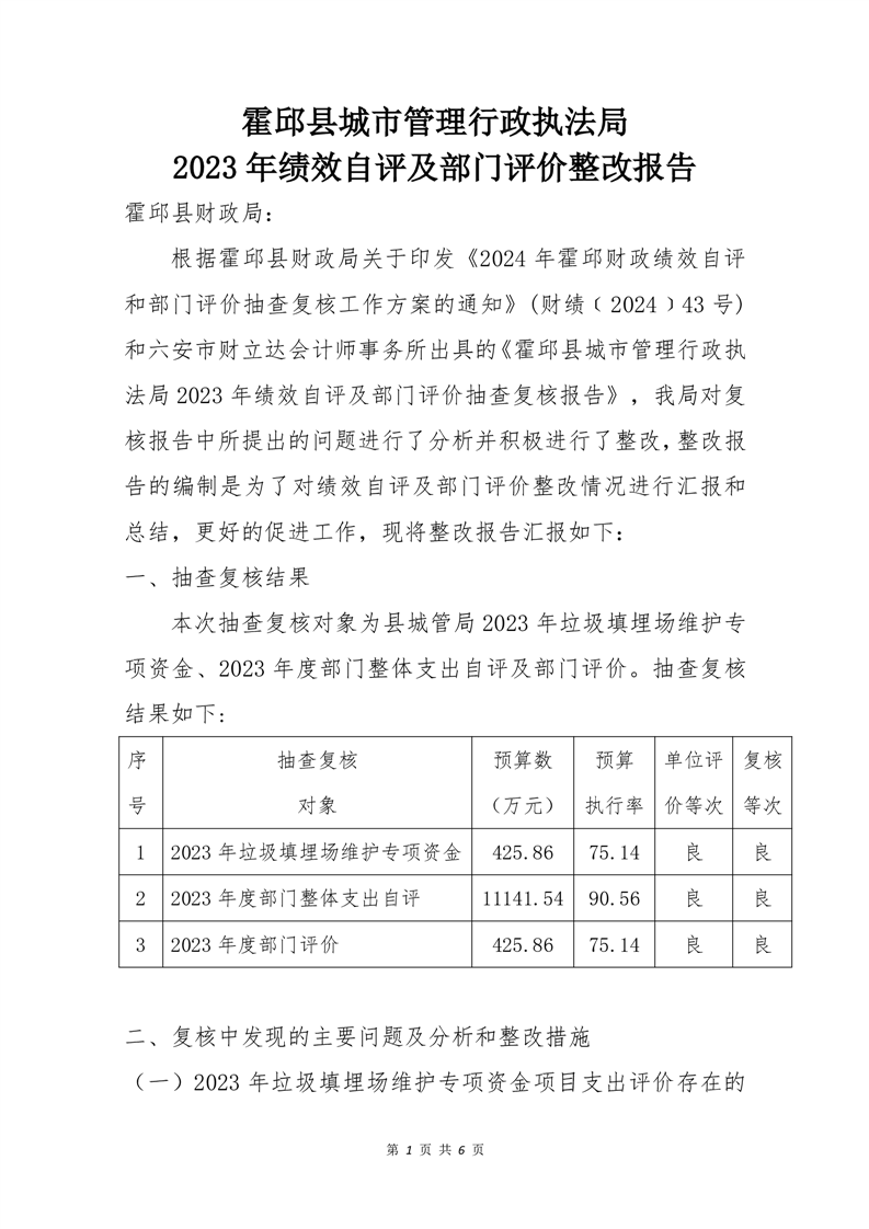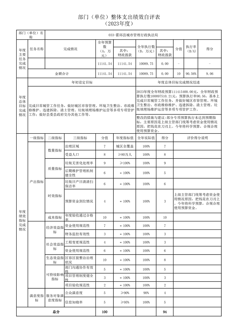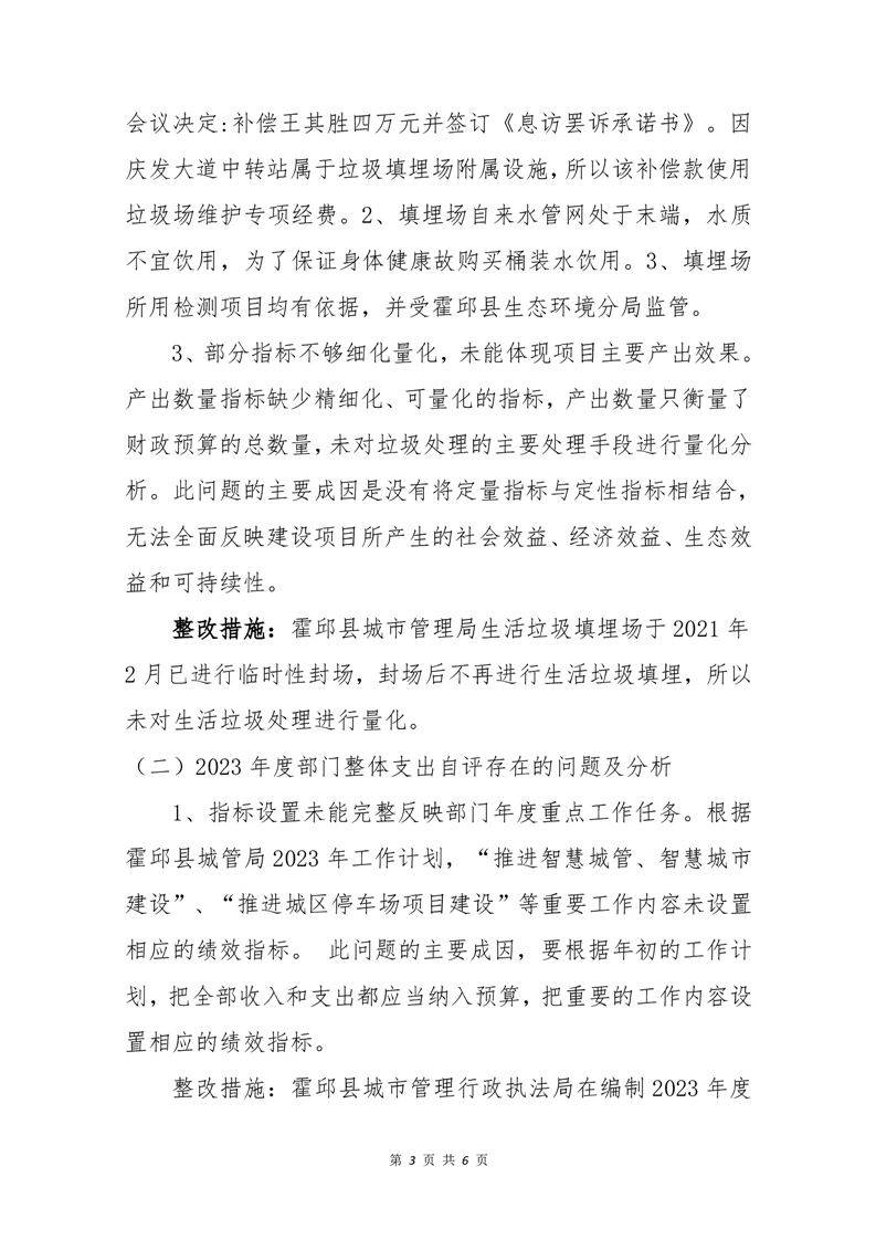 霍邱县城市管理行政执法局2023年度部门绩效评价报告