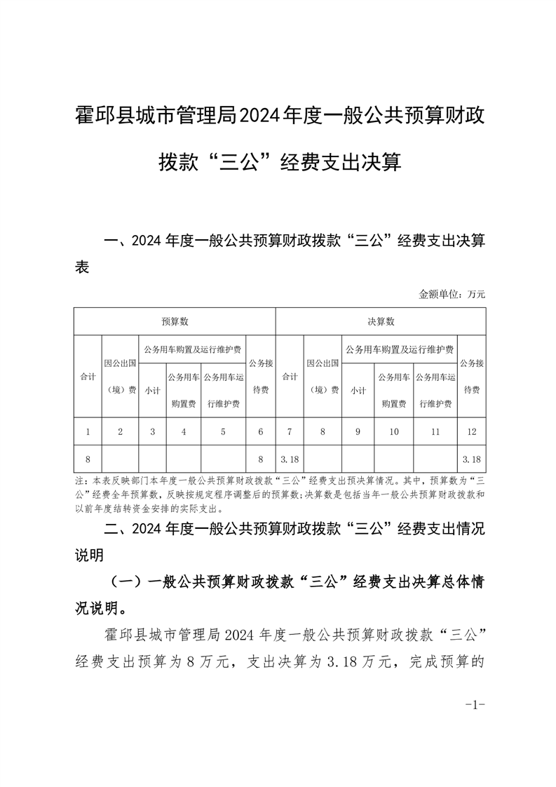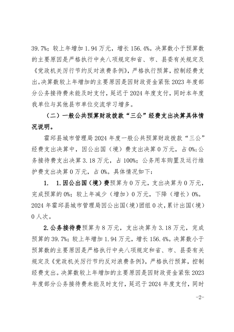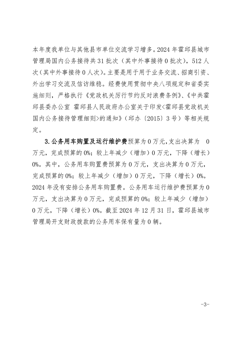 霍邱县城市管理局2024年度一般公共预算财政拨款“三公”经费支出决算情况