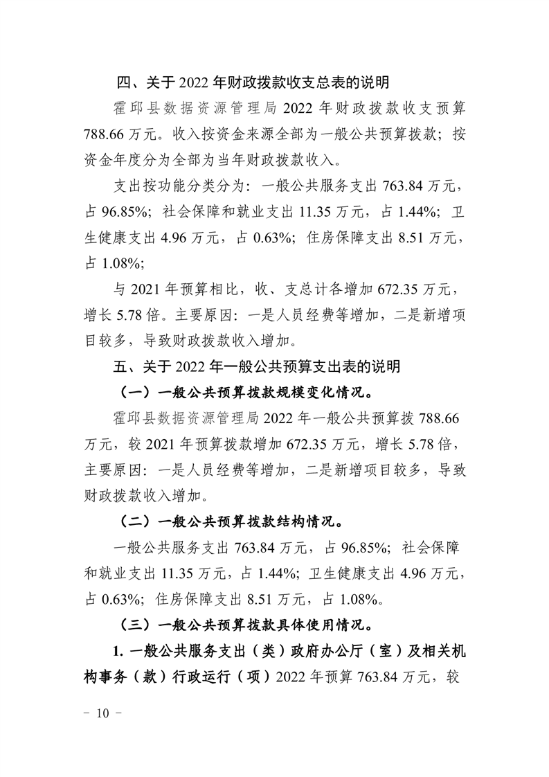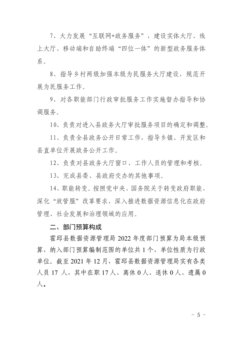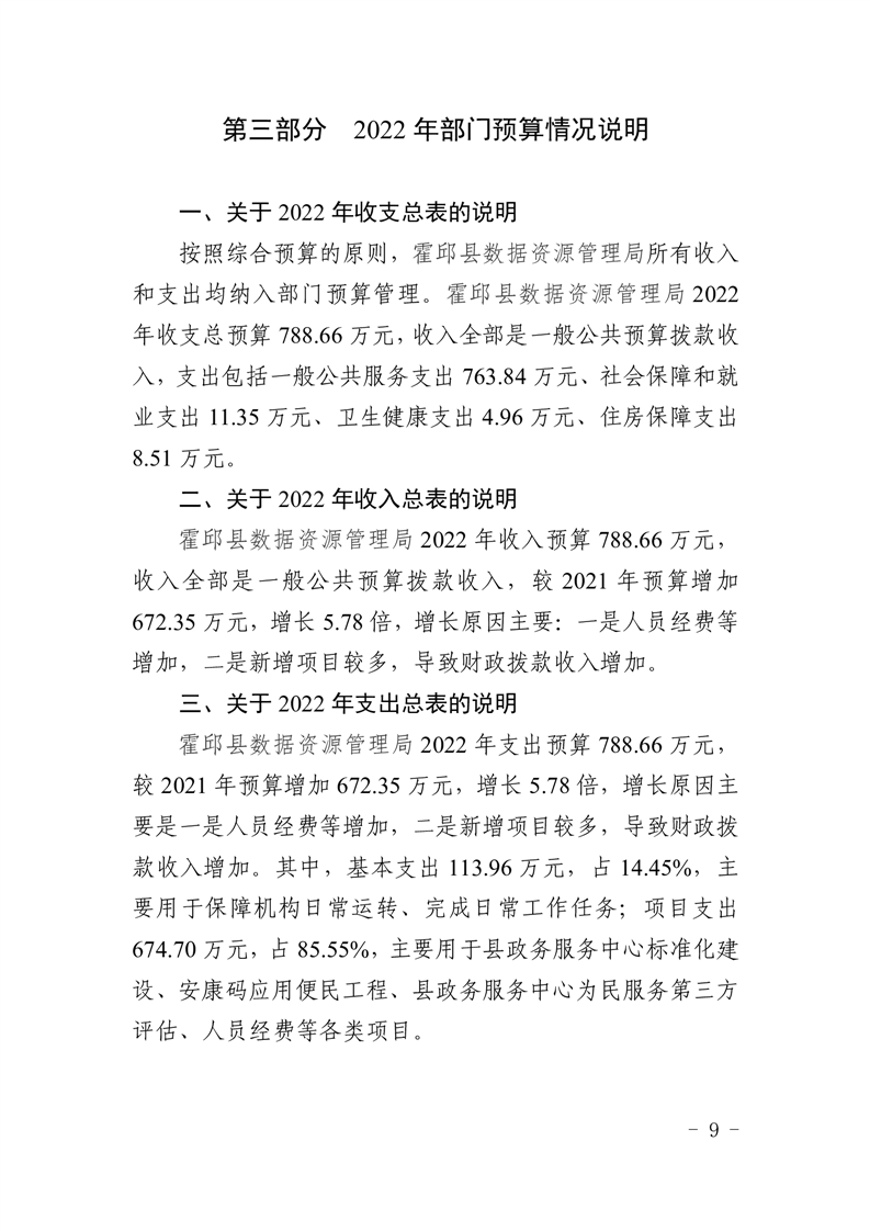 霍邱县数据资源管理局2022年预算公开