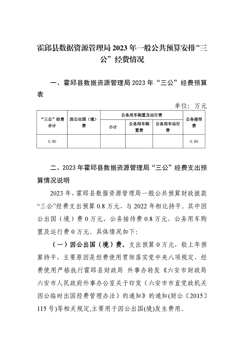 霍邱县数据资源管理局 2023 年“三公”经费
