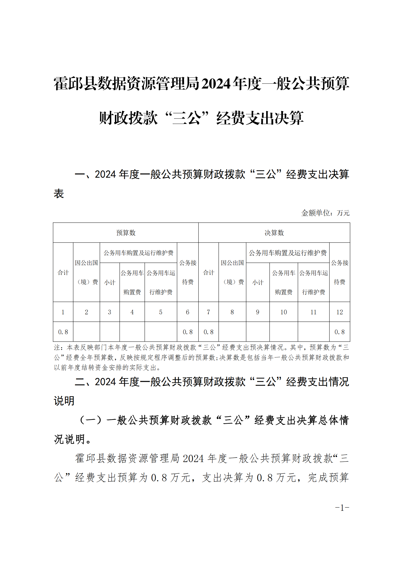 霍邱县数据资源管理局2024年度一般公共预算财政拨款“三公”经费支出决算