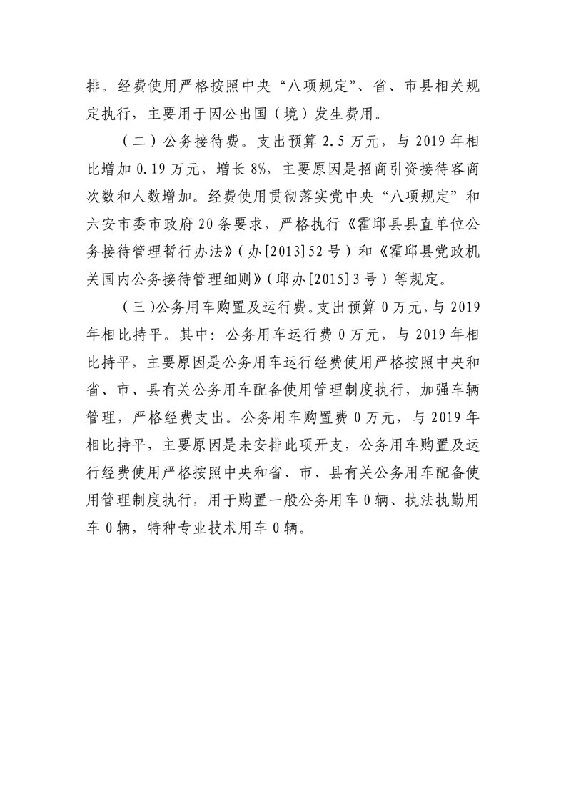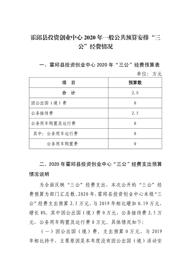 霍邱县投资创业中心2020年一般公共预算安排“三公”经费情况