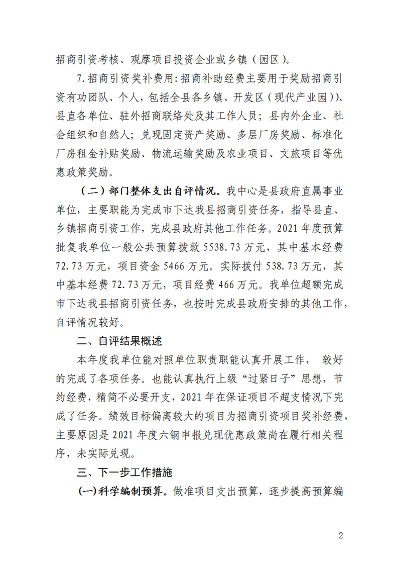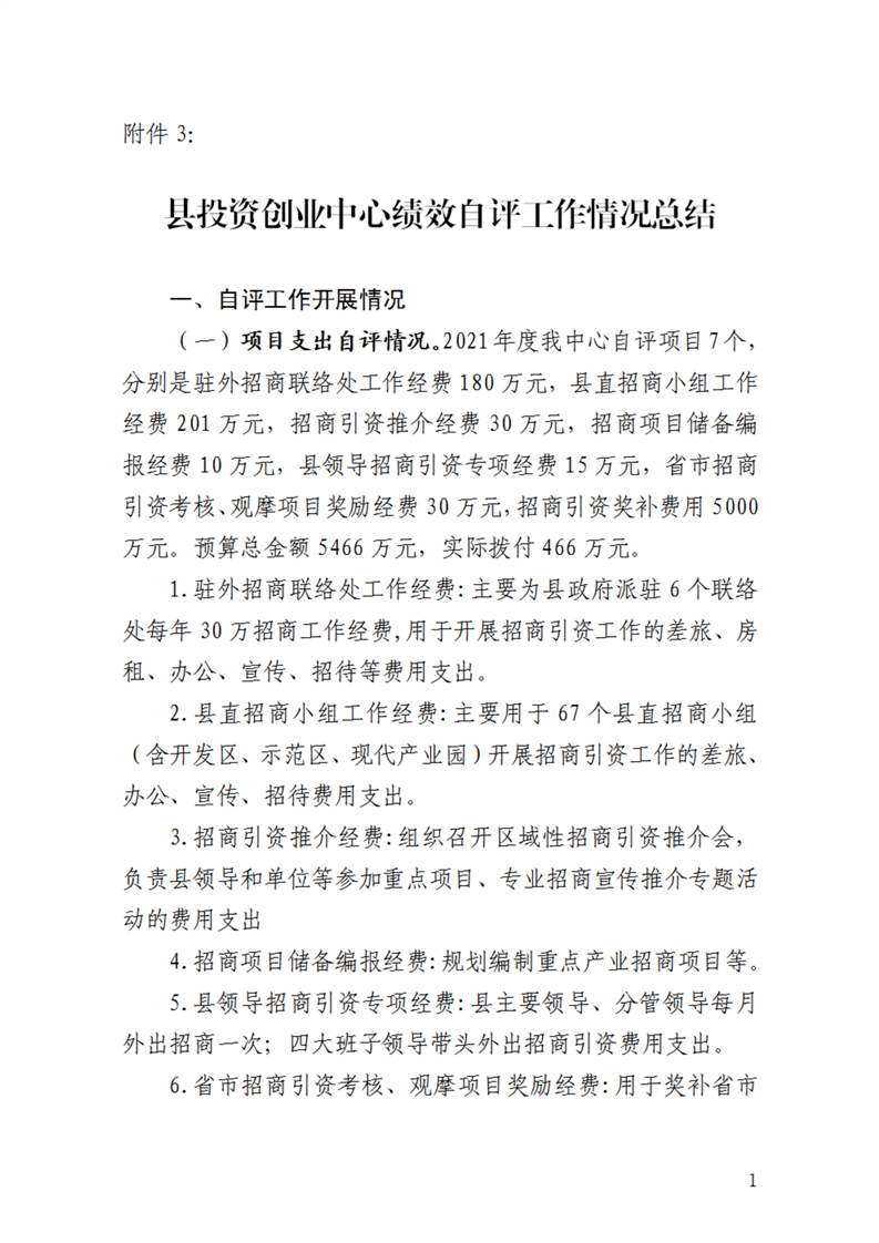 霍邱县投资创业中心2021年绩效自评工作情况总结