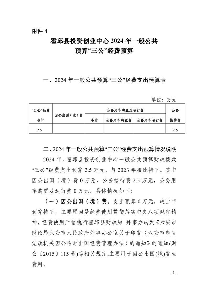 霍邱县投资创业中心2024年一般公共预算“三公”经费预算