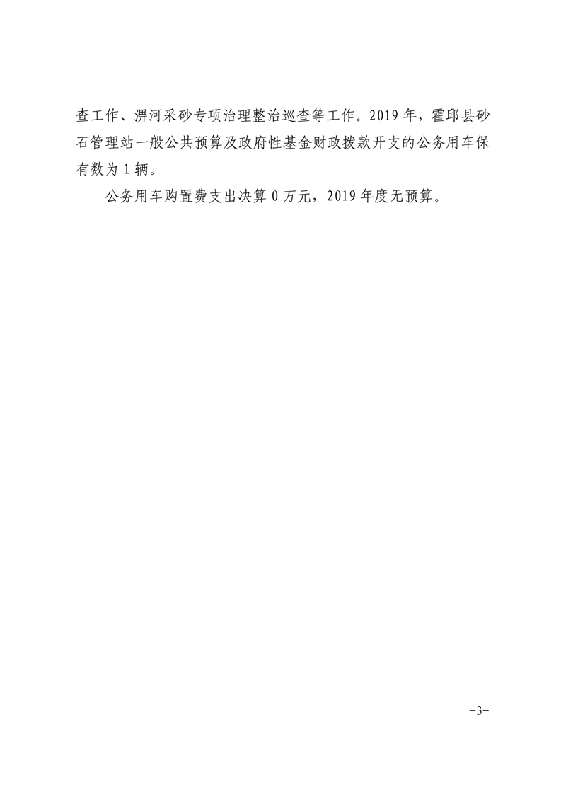 霍邱县砂石管理站2019年度一般公共预算财政拨款“三公”经费支出决算情况说明