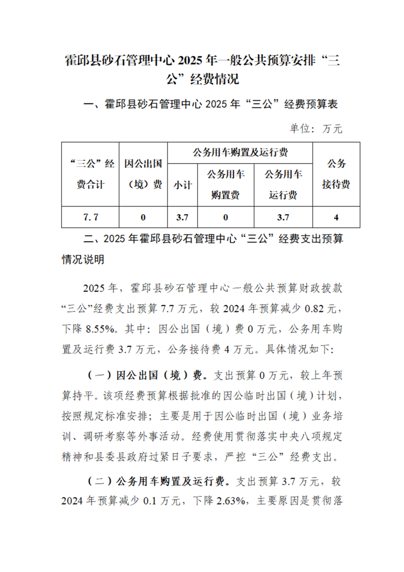 霍邱县砂石管理中心2025年一般公共预算安排“三公”经费预算情况