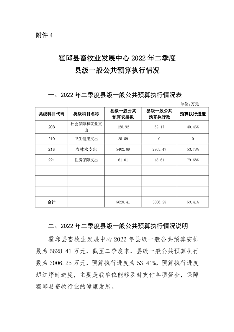 霍邱县畜牧业发展中心2022年二季度县级一般公共预算执行情况