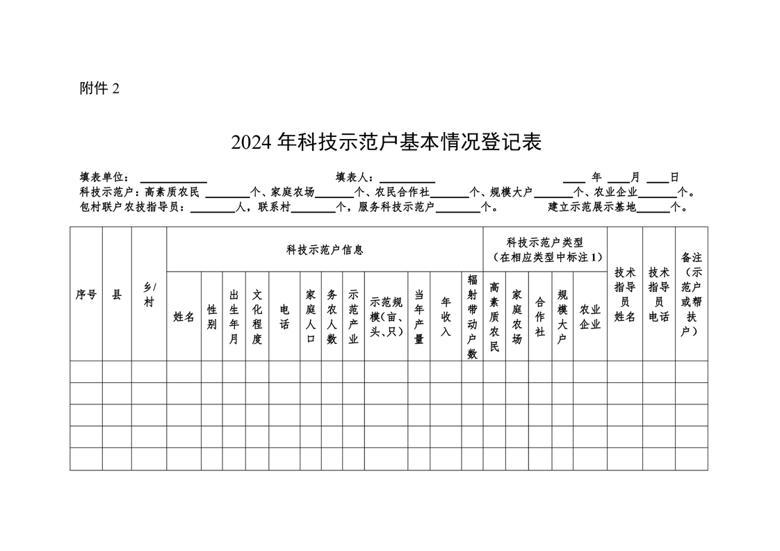 (四)强化调度。农业农村局将加强对春季农业科技服务情 况的调度,分别于 4 月 5 日、5 月 5 日前以中心为单位报送《2024 年全县春季农业科技服务活动情况统计表》(附件 1)。基层农技 推广体系改革与建设补助项目县要及时通报农技人员服务情况,并填写《2024 年科技示范户基本情况登记表》(附件 2 ,4 月 10日前报送)。县农业农村局将委托第三方,适时电话抽查全县农技人员包村联户服务情况,结果纳入绩效评价内容。