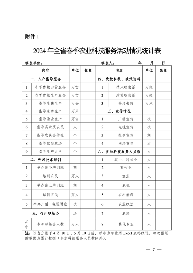 附件:1 .2024 年全省春季农业科技服务活动情况统计表