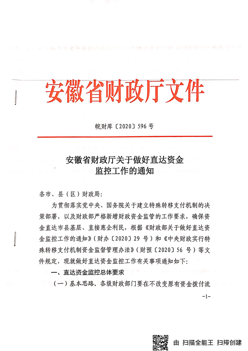 安徽省财政厅关于做好直达资金监控工作的通知