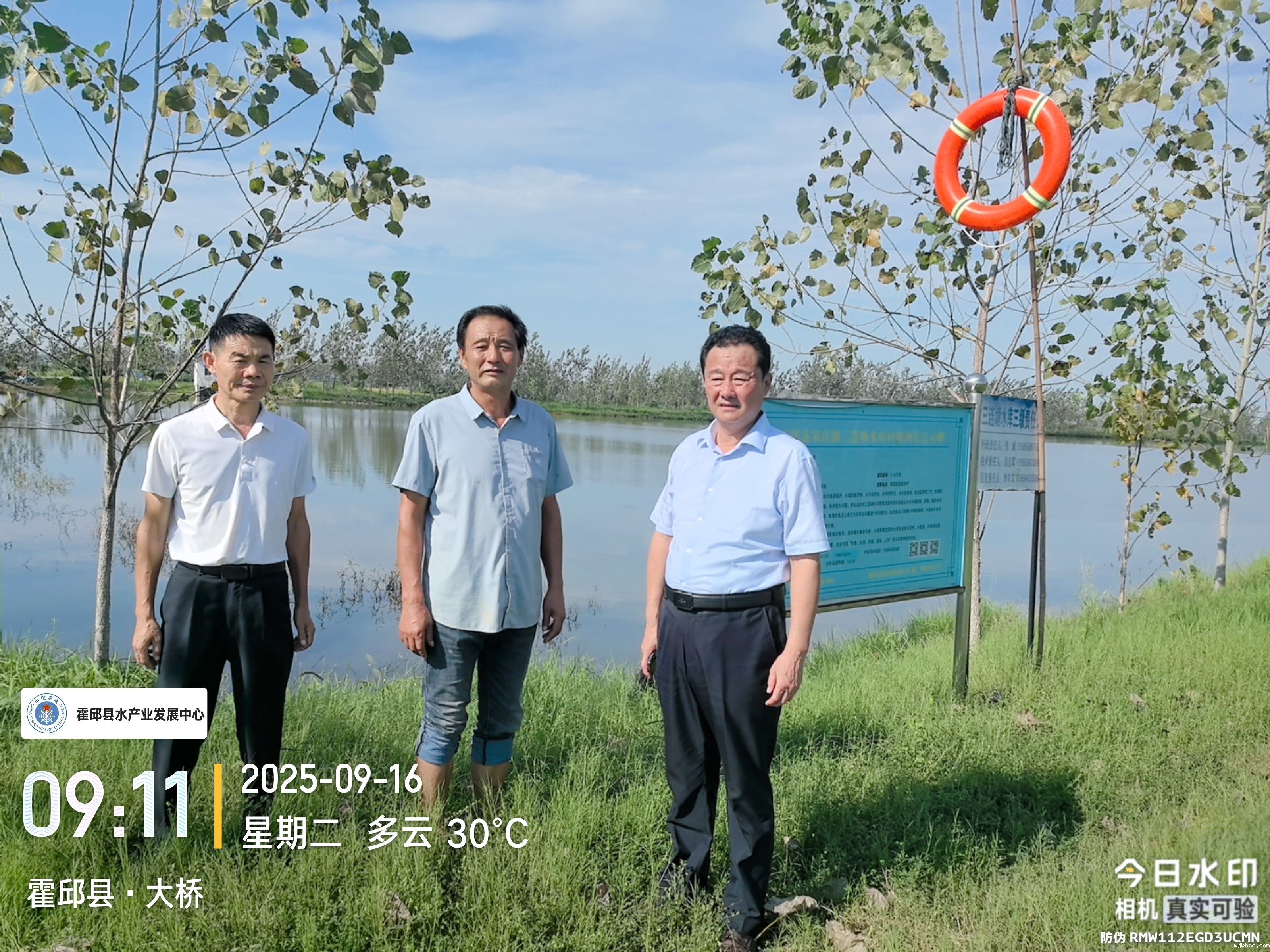 近日霍邱县水产中心负责人深入渔业养殖企业了解生产情况。